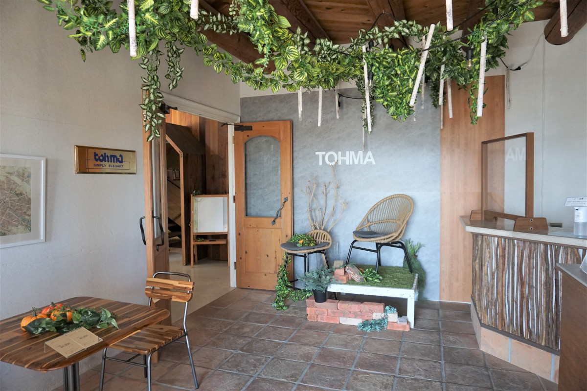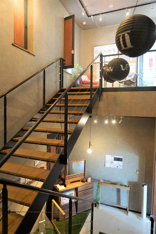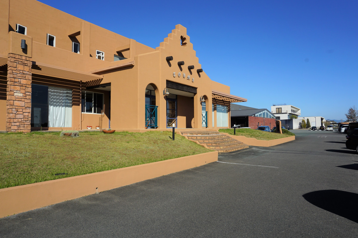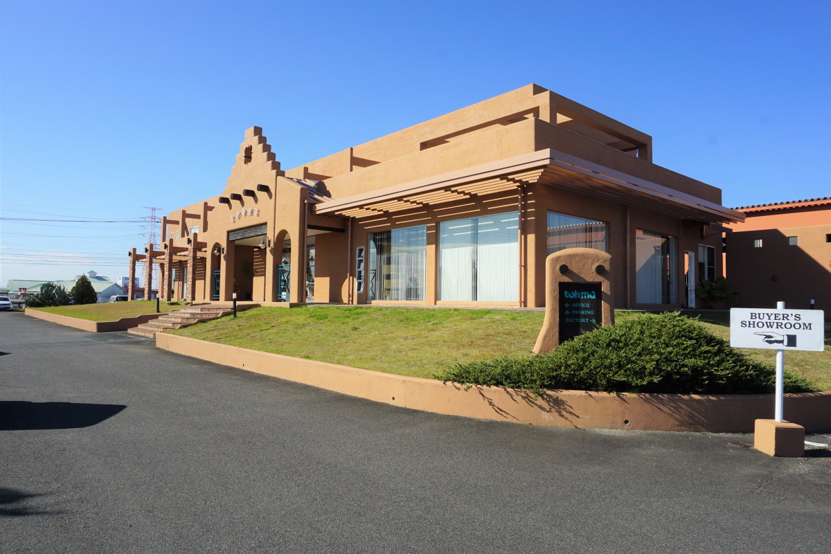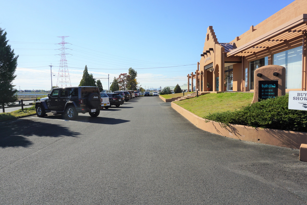 佐賀平野に突然あらわれる洋風の建物です。会長が家具の勉強をするために渡った、アメリカのサンタフェの街の建物をモデルに建築されました。敷地内は広く、工場と併設されております。配送トラックの出入りもありますので、ご来店の際はご注意ください。施設内は車いすでの入店、並びにベビーカーのままでの入店可能です。入り口までに8段ほど階段があります。お手伝いが必要な方はご予約時にその旨お伝えください。
