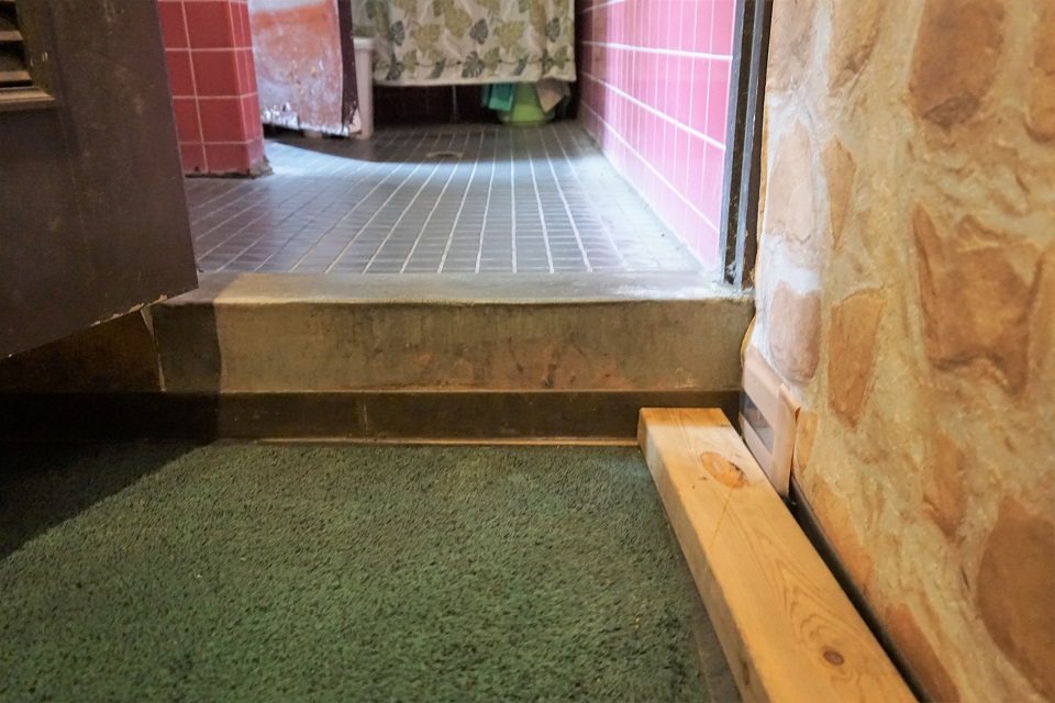トイレの入り口までの通路に1段、トイレ入り口に1段段差あり