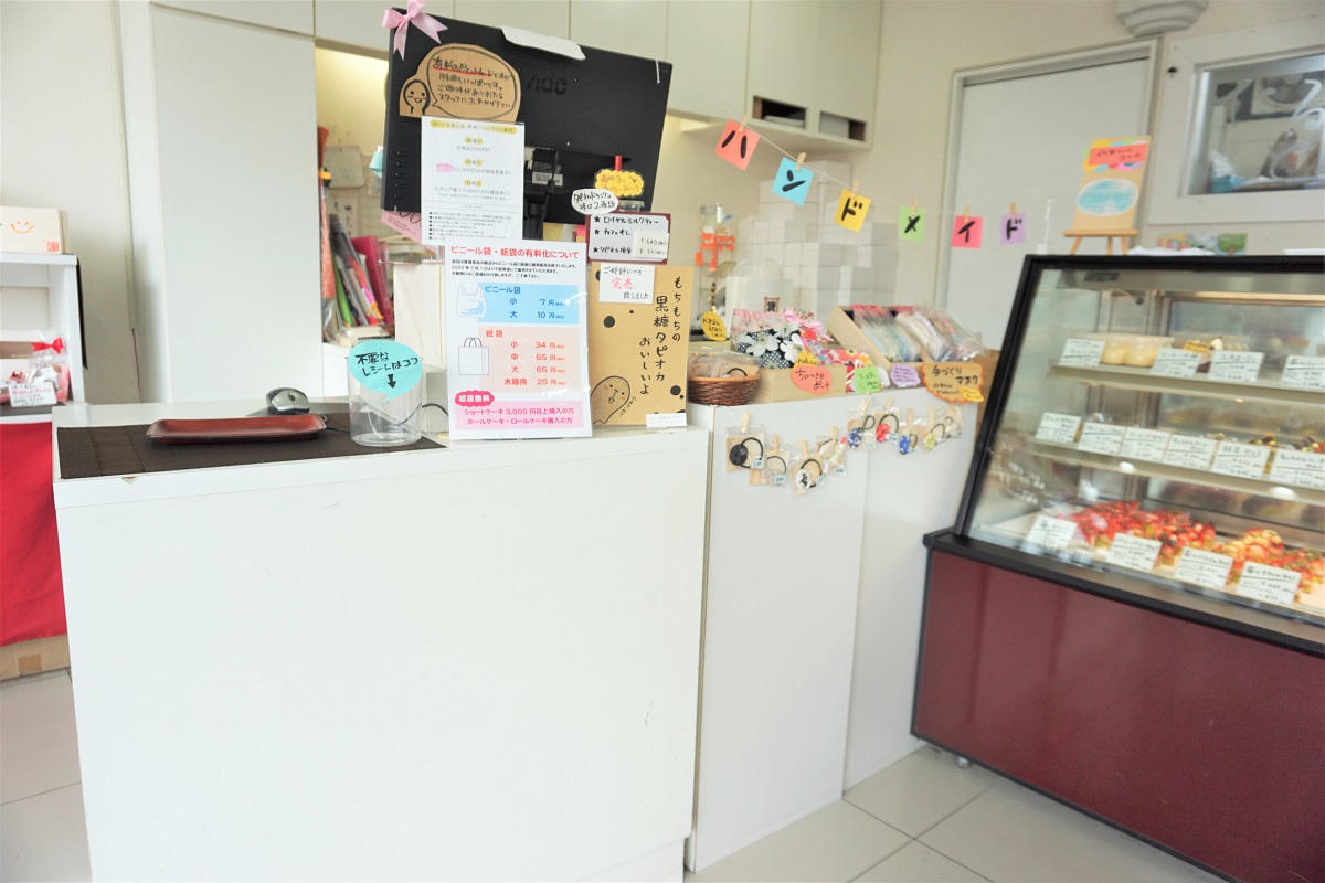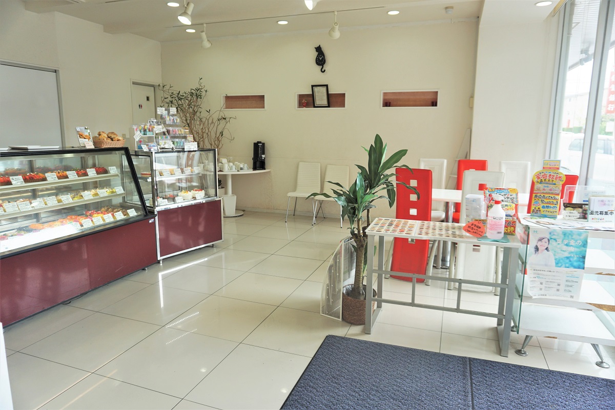 ご購入いただいたケーキをイートインスペースにて食べることができます。お皿に乗せてお出ししますのでお声掛けください。
