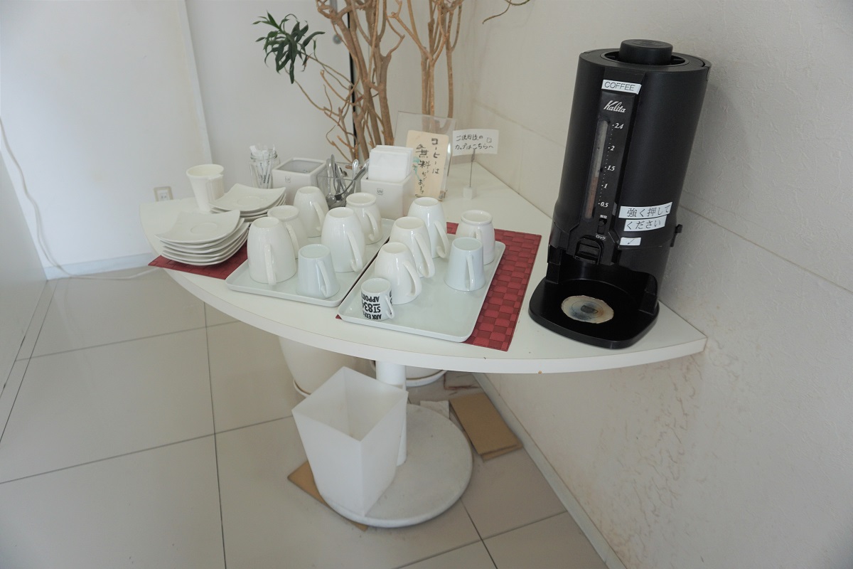 セルフサービスにて、コーヒーと2種類のジュースの提供あります。