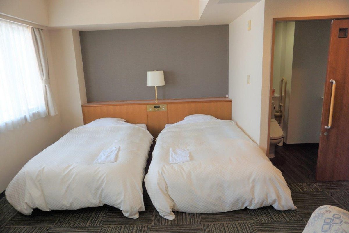 ツインのお部屋はバリアフリールームとして、広めのつくりとなっており、トイレも手すり等を設置しております。