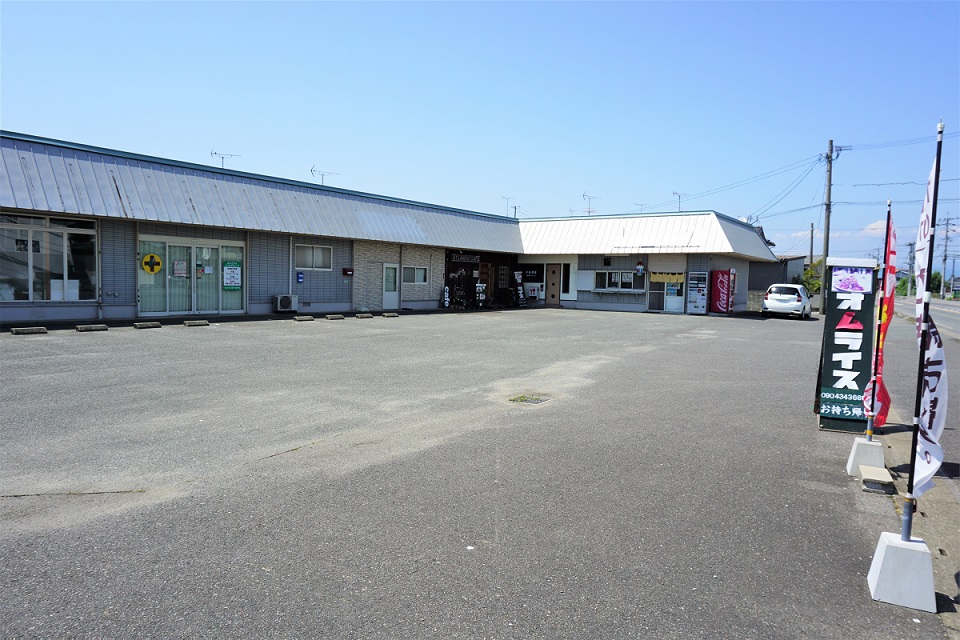 駐車場はいくつかあるテナントと共用のスペースになっておりますが、とても広く、ゆったりと停めれます。出入口に段差があります。店内はフラットですが、トイレは和式で段差がありますので、お写真でご確認ください。