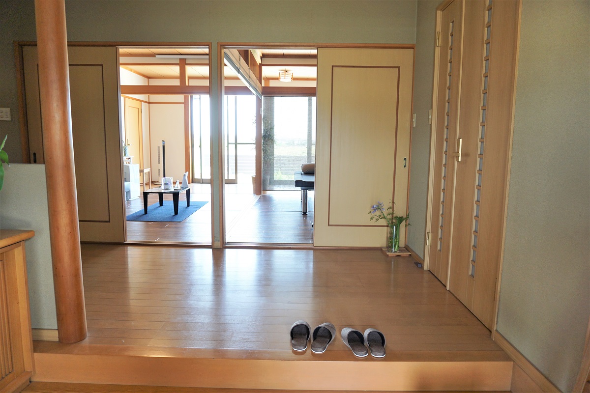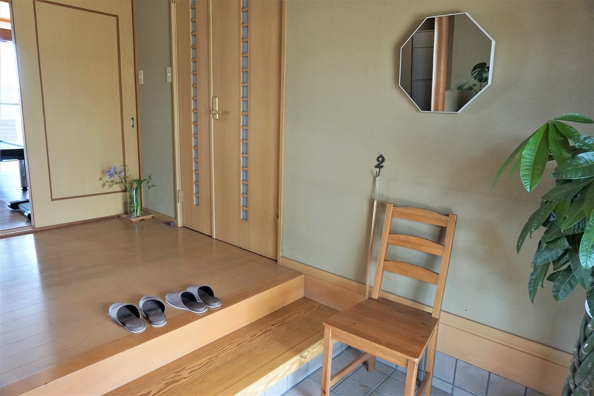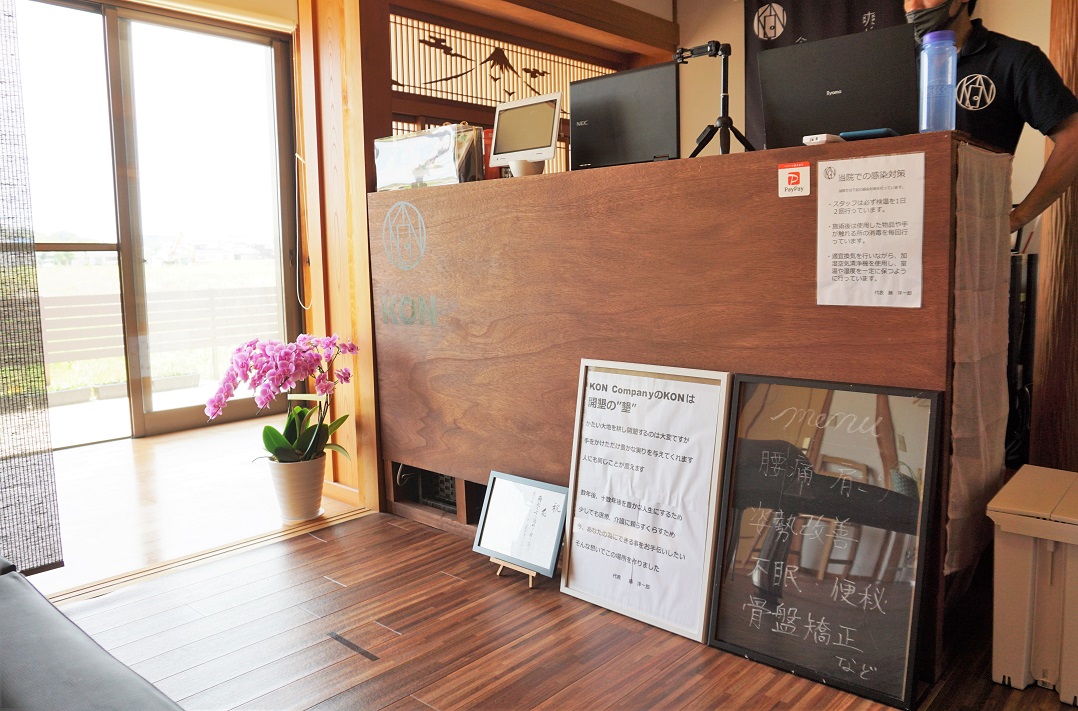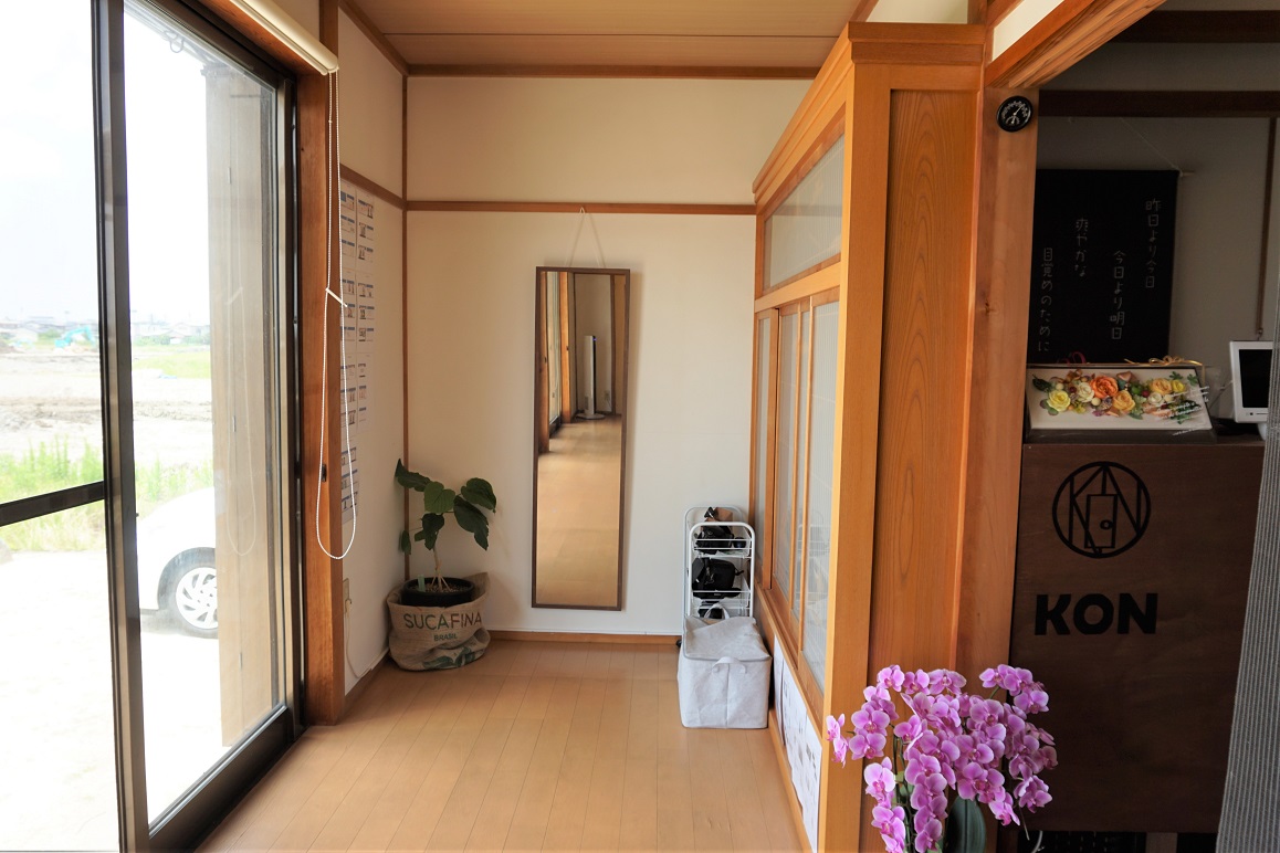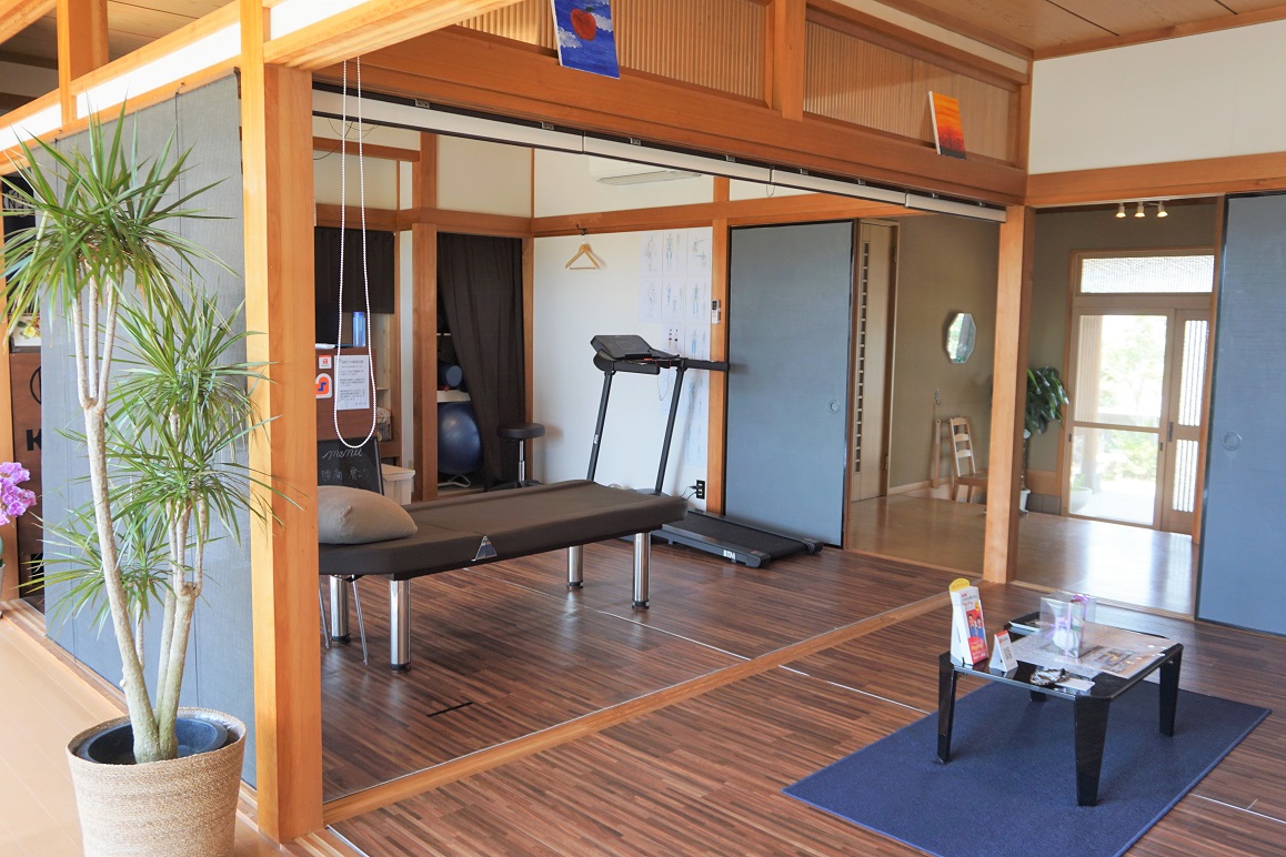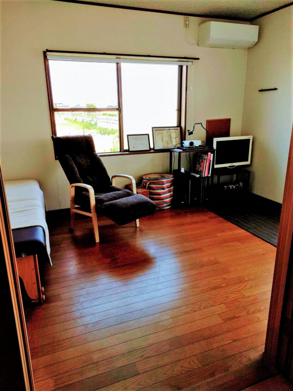 田んぼに囲まれた一軒家が住宅兼店舗です。駐車場は舗装されておりません。住宅兼店舗のため出入り口までの通路、玄関内にも段差があります。事前にご連絡頂ければ、車椅子の出入り介助をさせていただきます。施術ルームは広くお子様連れでも来店可能です。ビデオ鑑賞のできるキッズルームもございます。