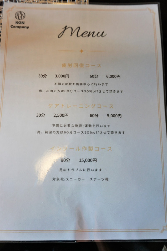 全メニュー初回は50パーセントオフ(インソール作製除く)