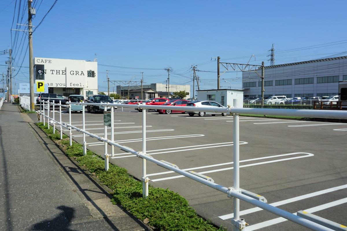 23台駐車可能。駐車場隣には遊具を設置した人工芝の広場「キッズラボ」あり。駐車場から店舗入り口までは歩道を通り店舗へ。入口の前に1センチほどの段差あり。トイレ出入口の幅が少々狭いため、一度お写真でご確認ください。店内は人工芝を敷き詰めたフロア。テーブル席、カウンター席、テラス席、トレーラーハウス(要予約)あり。テイクアウト可能。