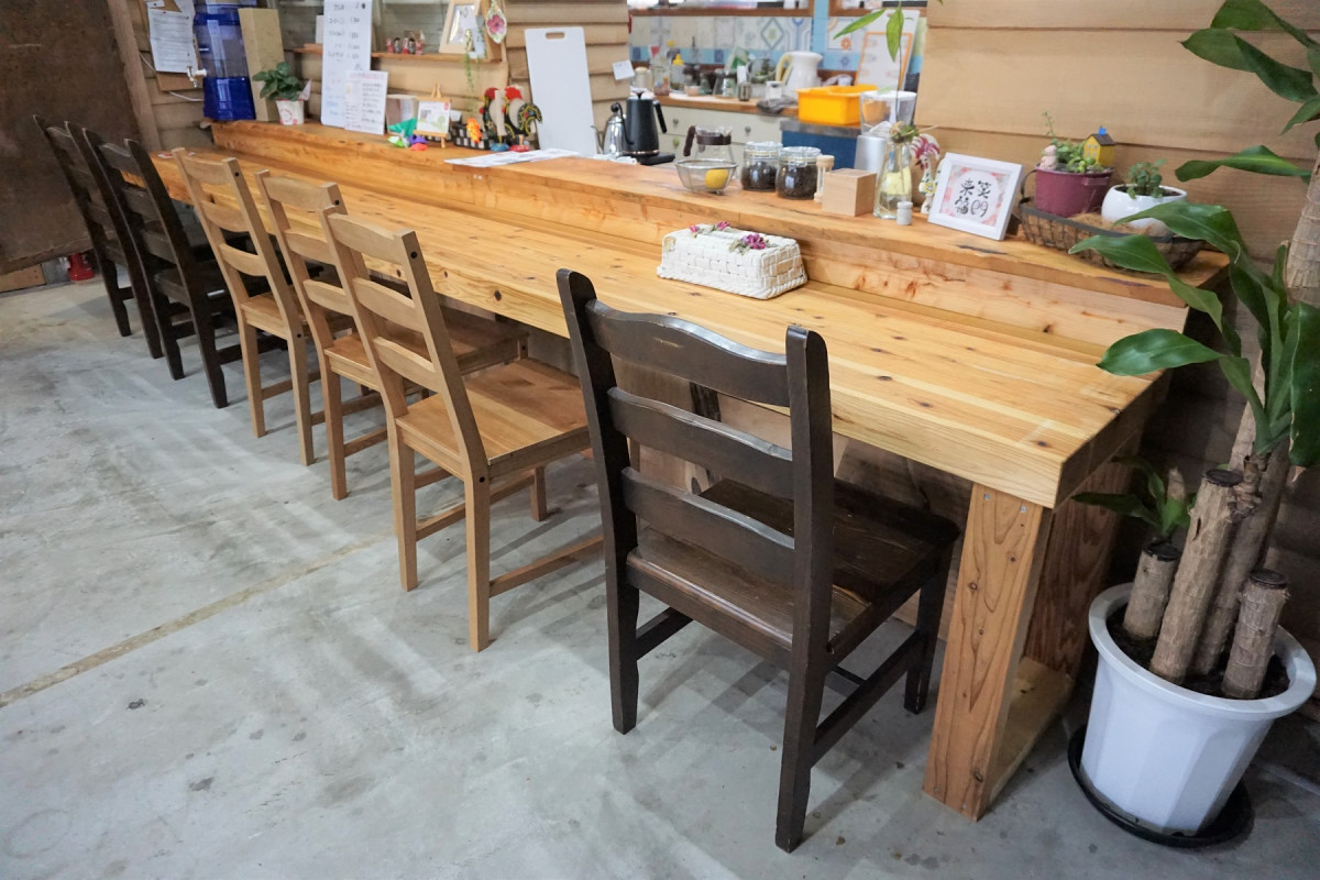 オーナー自身の手で改装した店内で、手作りの家具や木製カウンターに囲まれる中、定食やホットサンドなどの軽食、コーヒーを楽しめます。