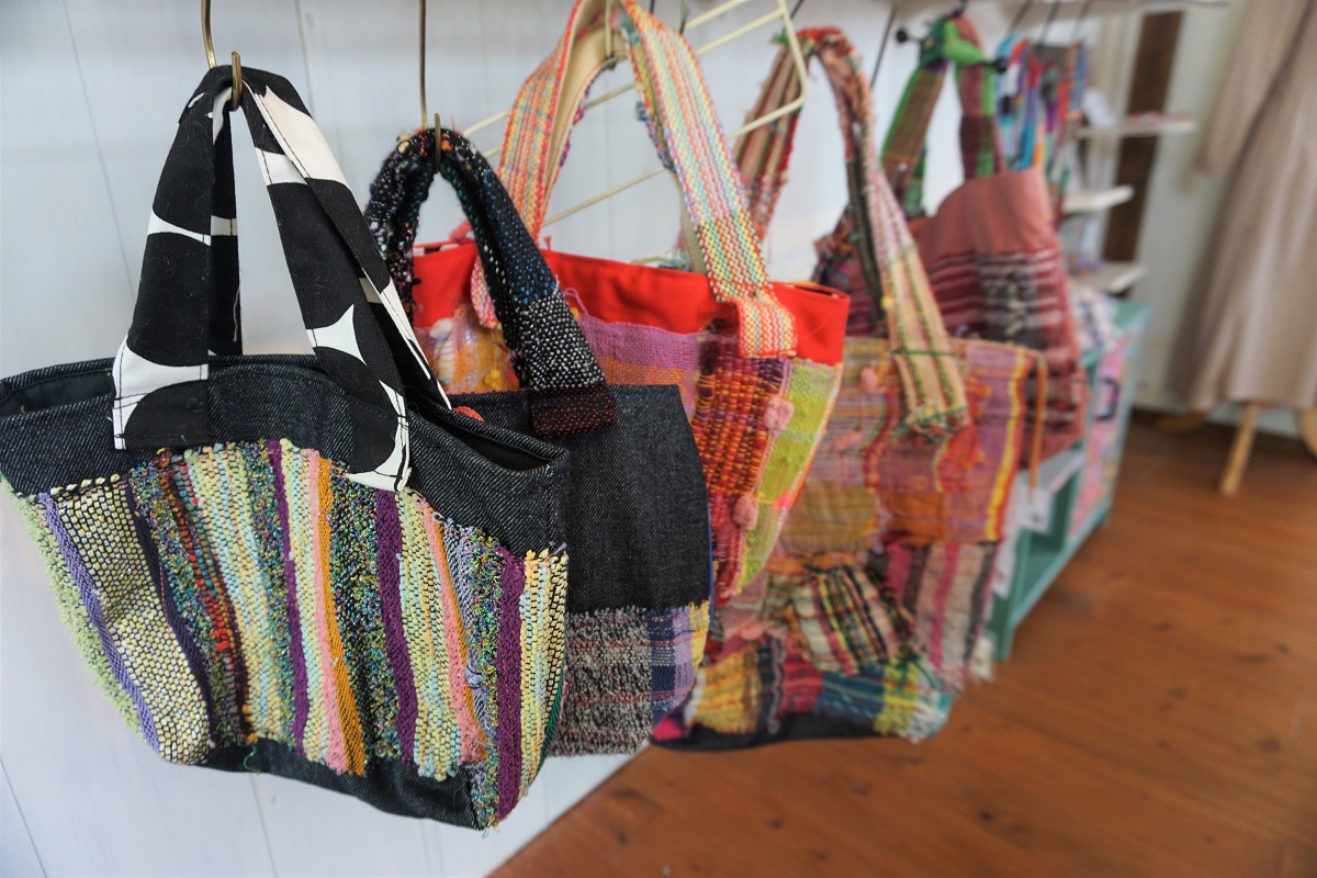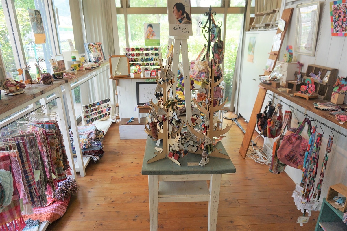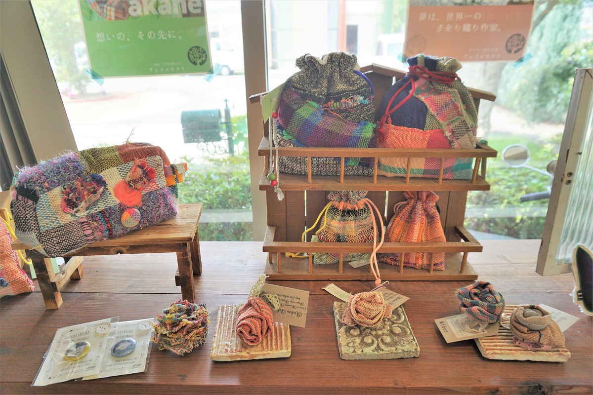 アクセサリーや、バック、小物入れや、ストールなどさおり織を使った商品の種類も豊富に準備しています。