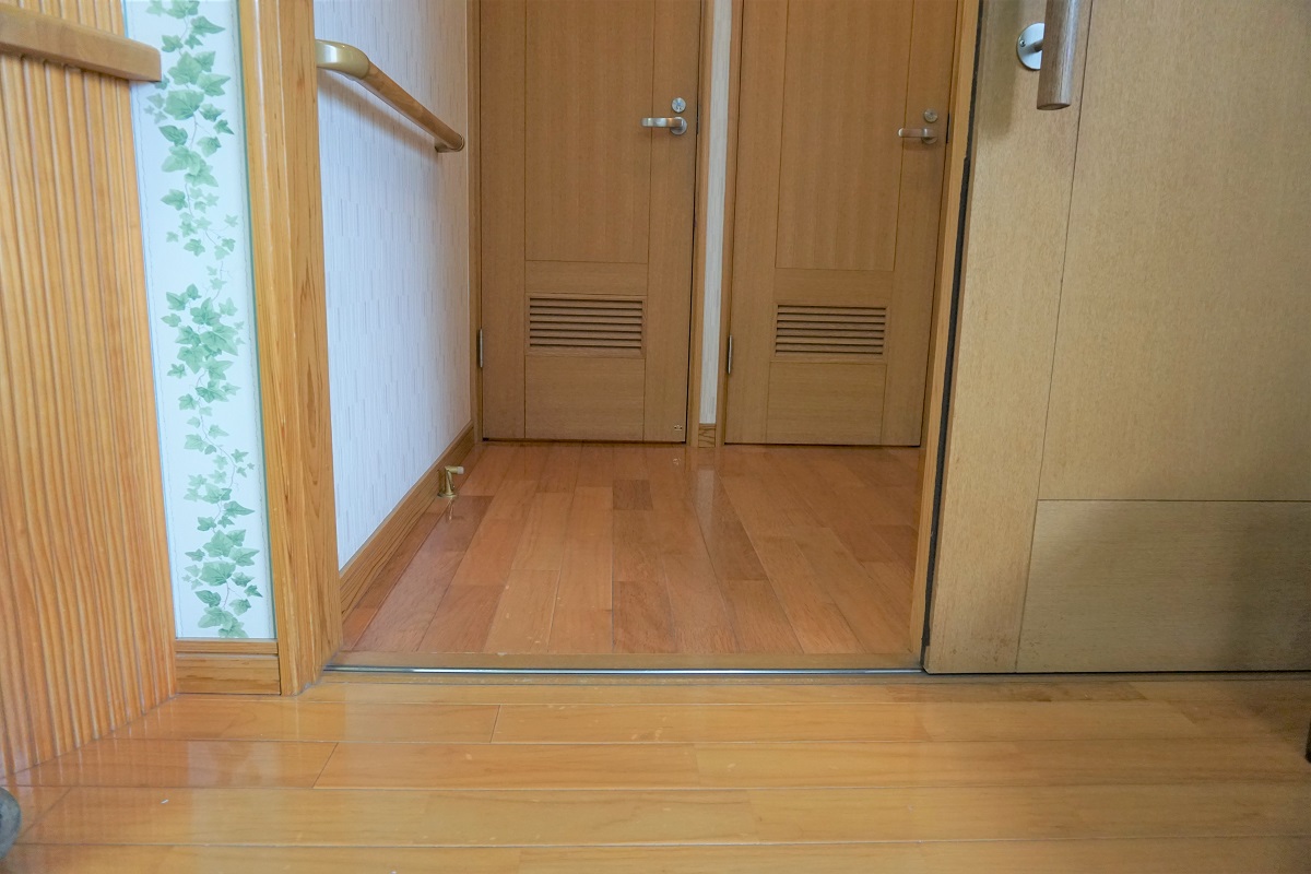 玄関まではスロープがあり、玄関内に1段の段差がありますので、お写真でご確認ください。