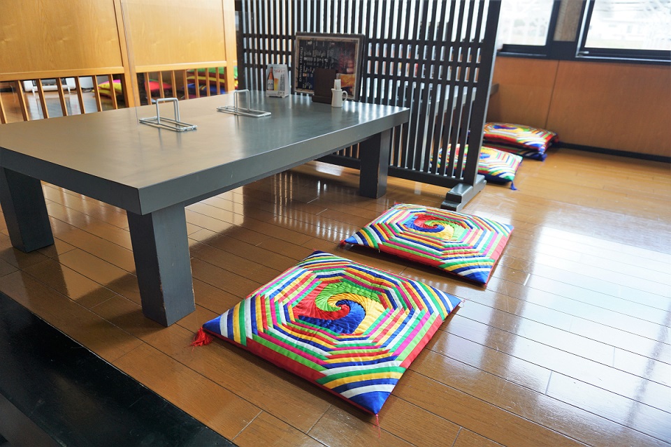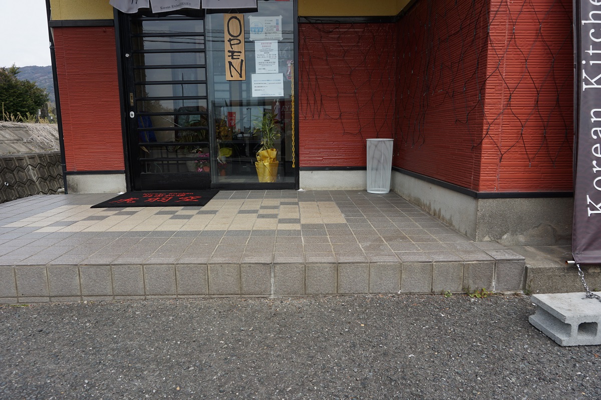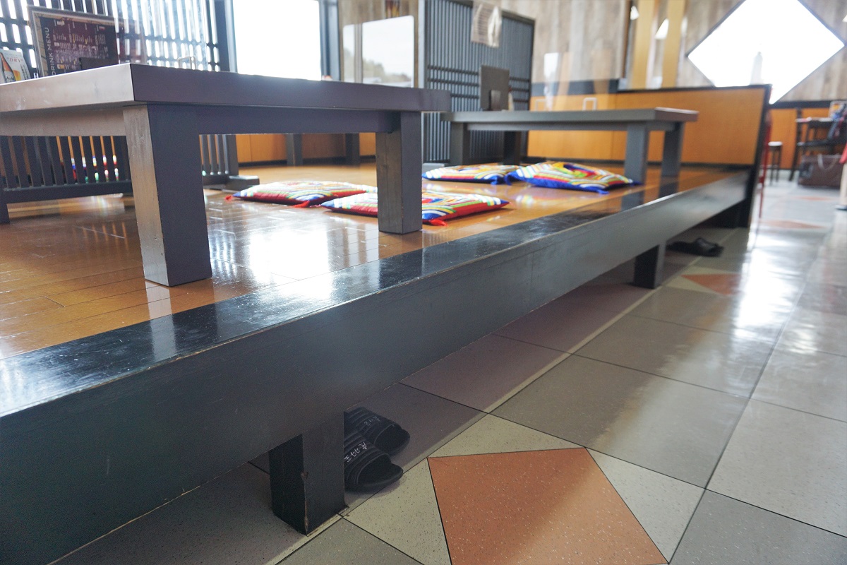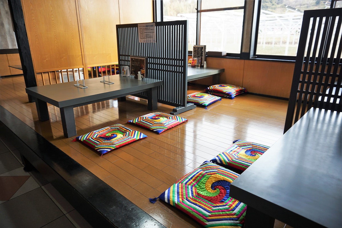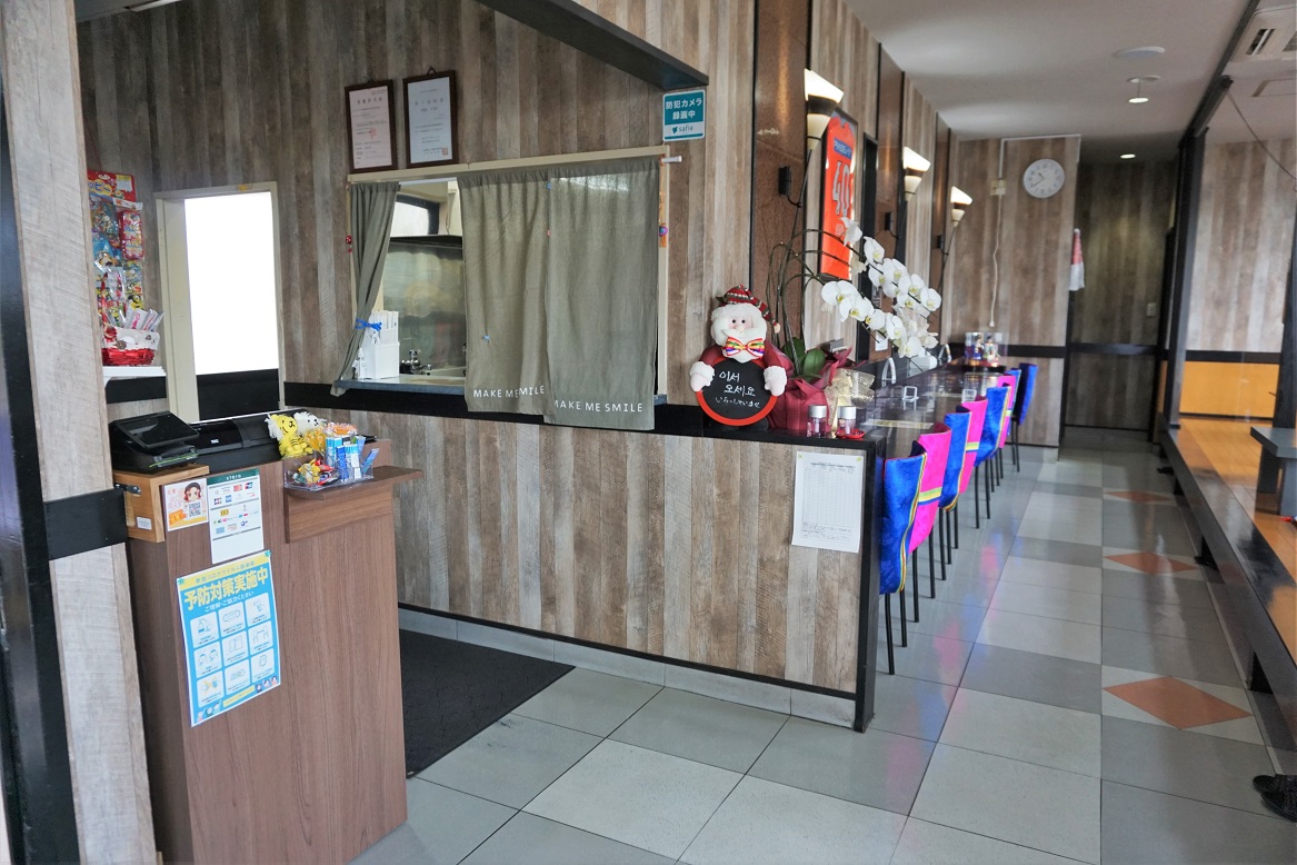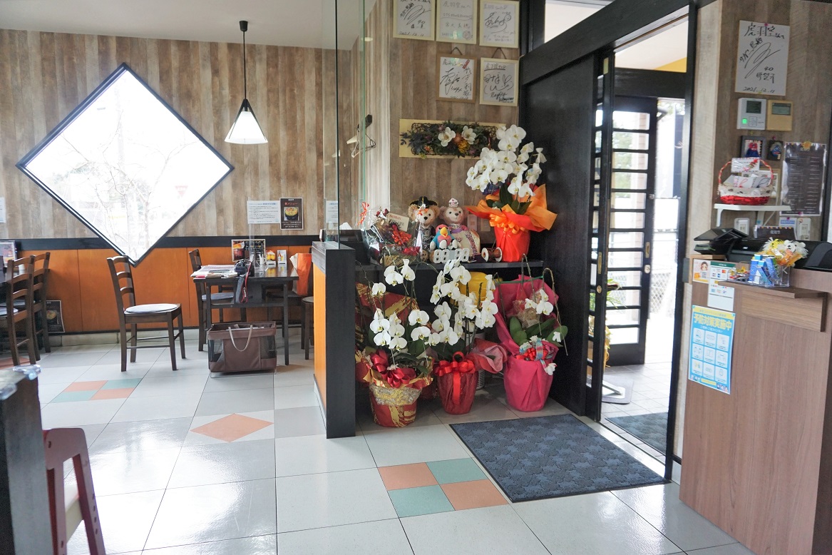 第1駐車場は店舗前にあります。第2駐車場は舗装はありませんが、大型車の駐車(要事前連絡)も可能です。入口までに段差が1段あります。店内はフラットで、テーブル席、カウンター席、小上がりのお座敷があります。ベビーカー利用や車いすでのご利用も可能です。