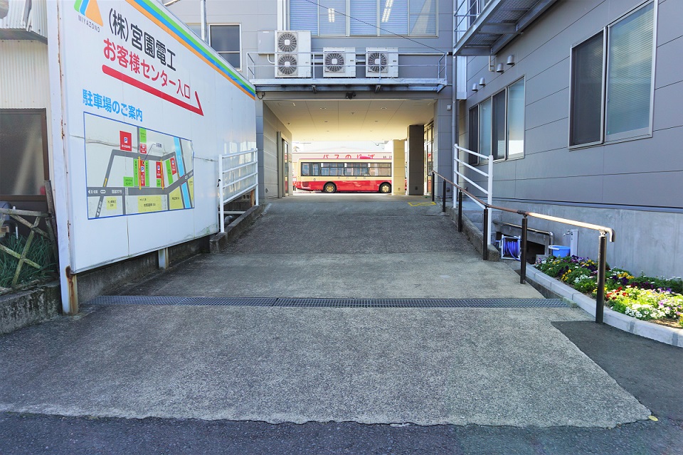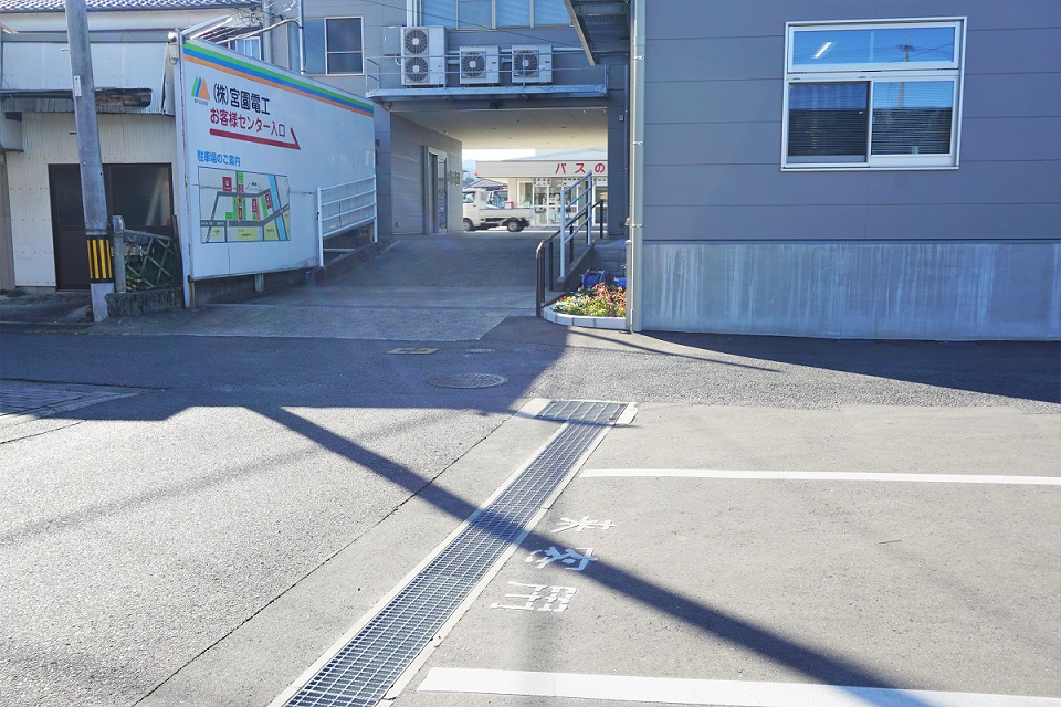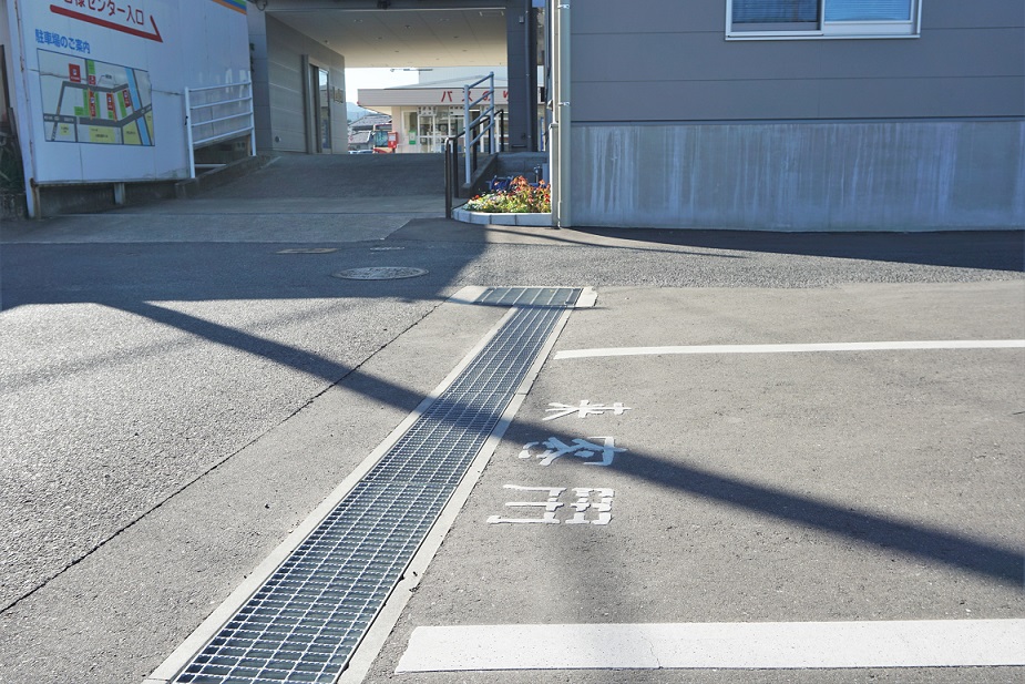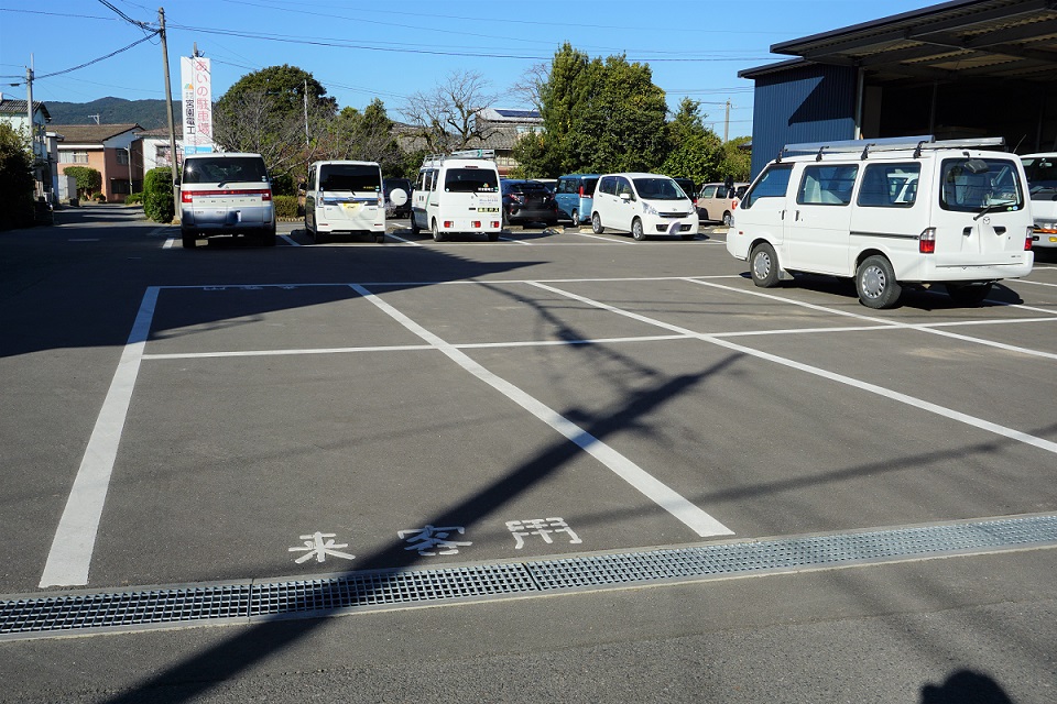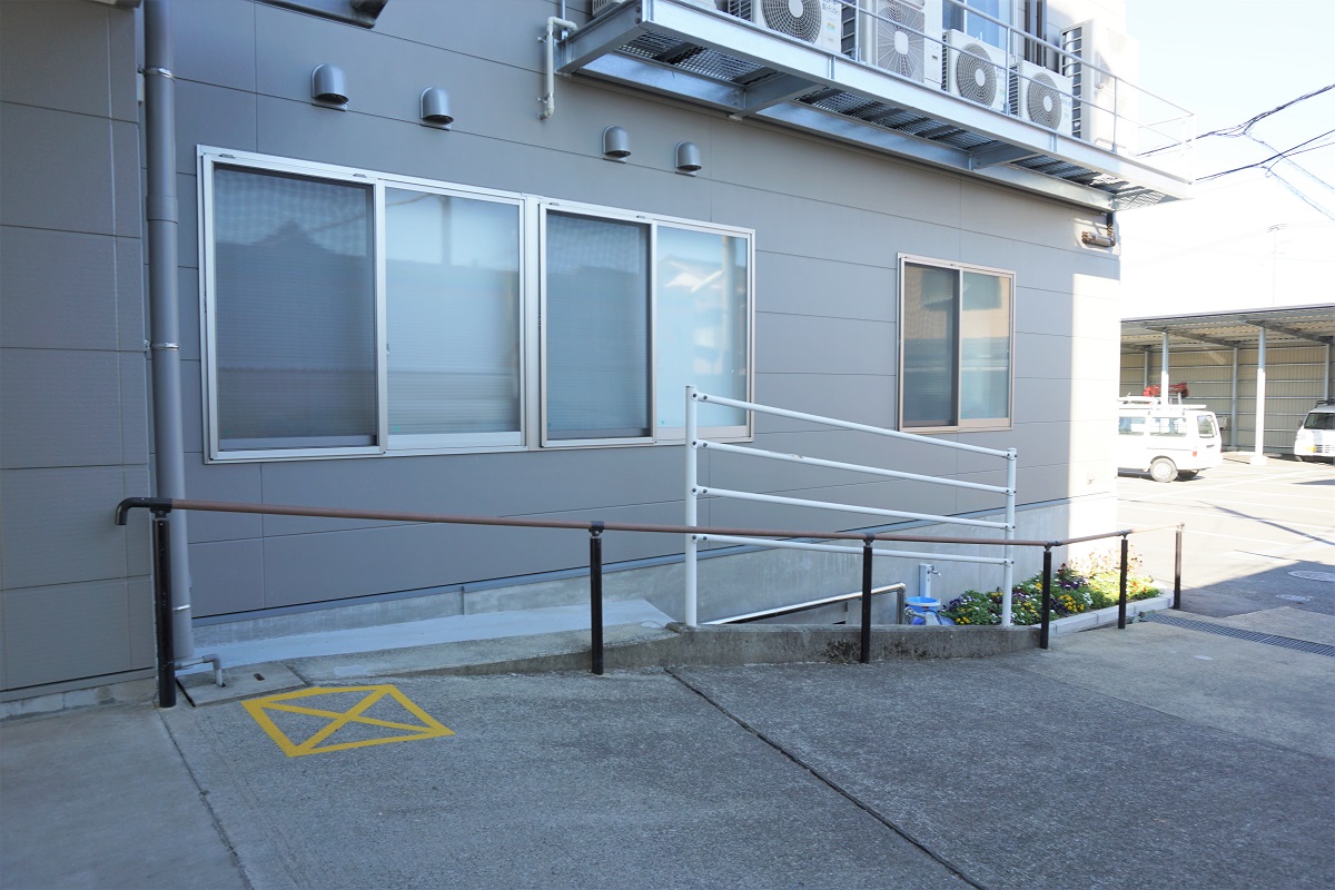 駐車場は建物裏にあり、店舗入り口までは少々傾斜になっております。正面出入口は自動ドアで、ベビーカーのままや車いすでの入店もスムーズです。