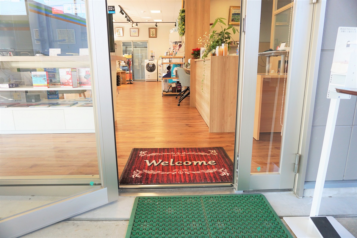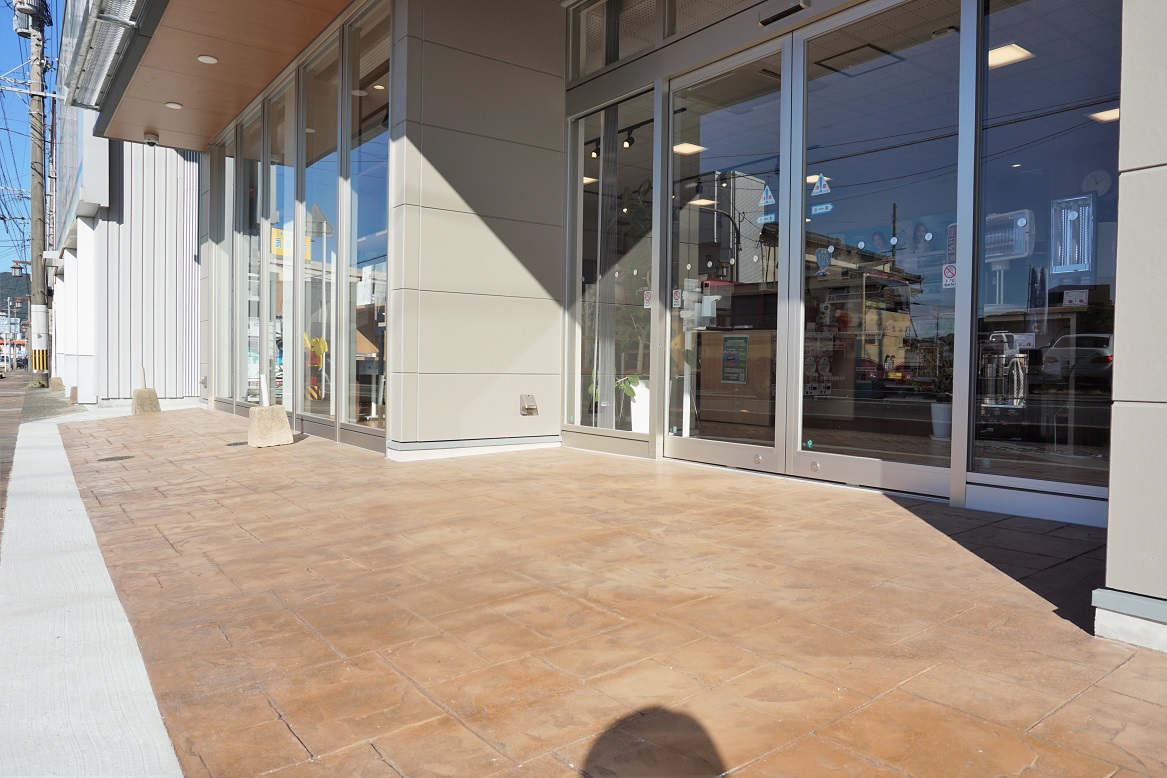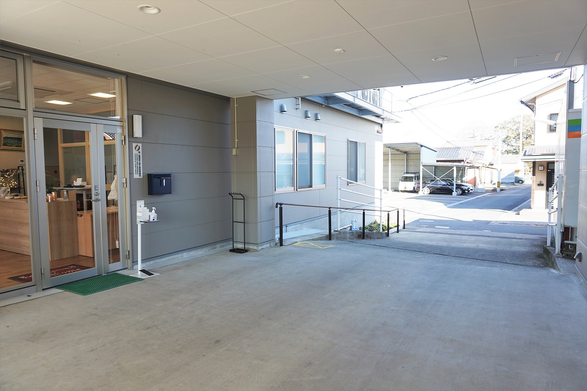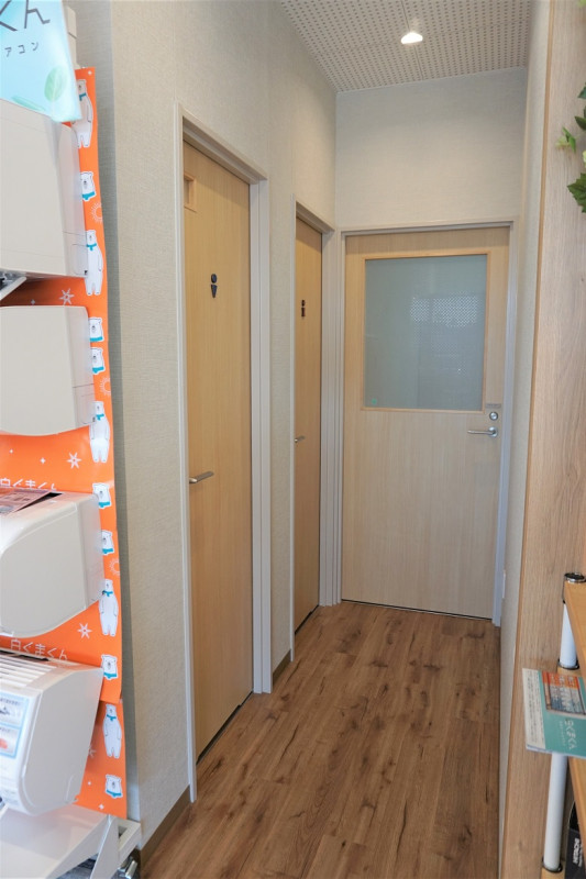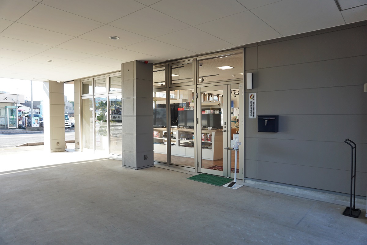 駐車場は建物裏にあり、店舗入り口までは少々傾斜になっております。正面出入口は自動ドアで、ベビーカーのままや車いすでの入店もスムーズです。