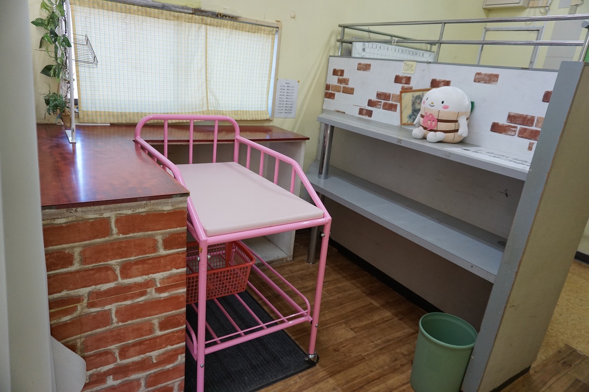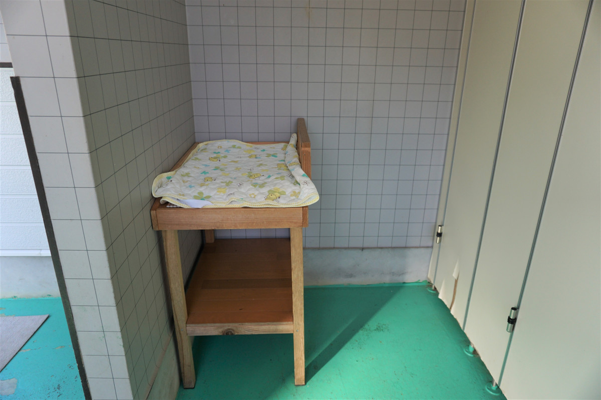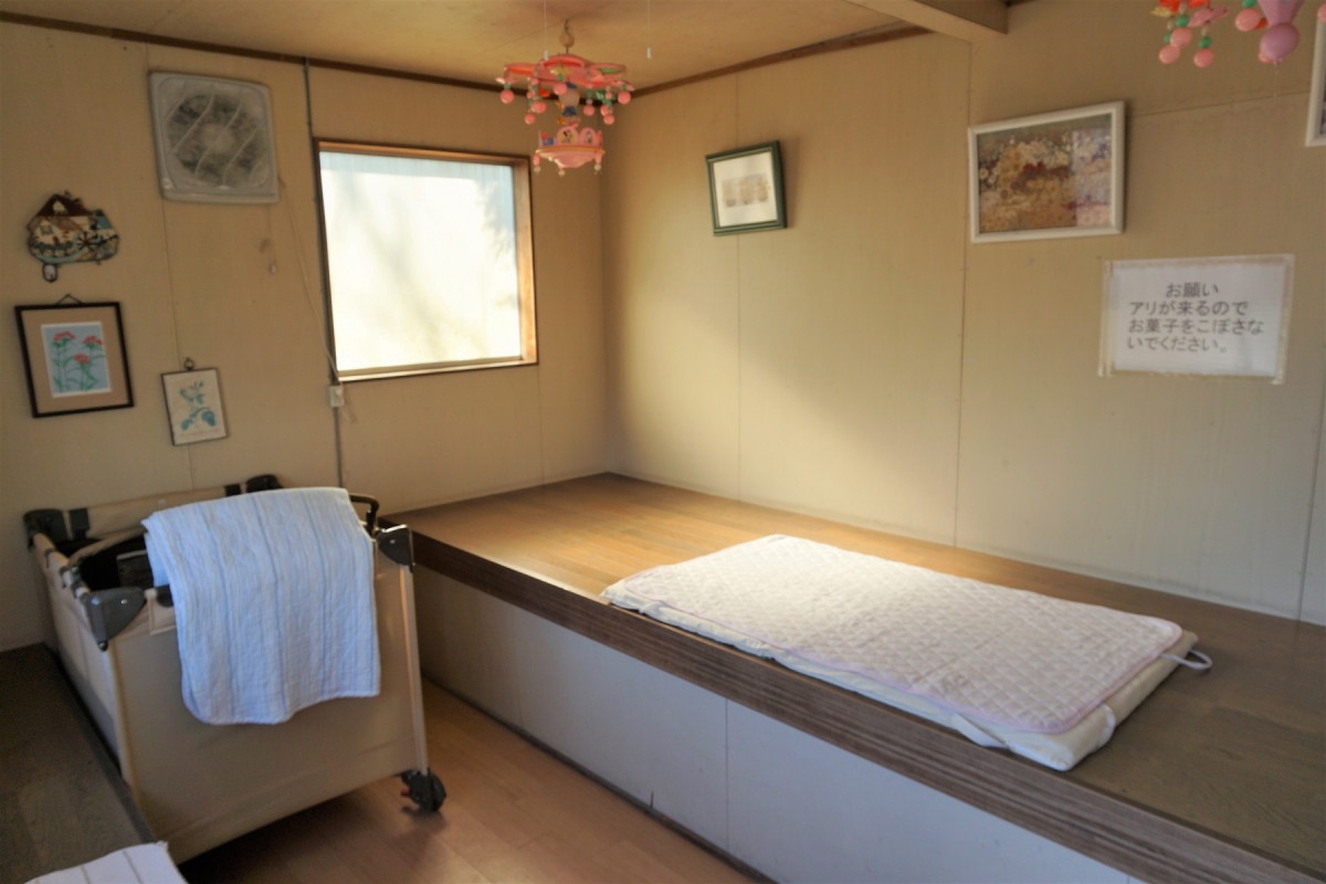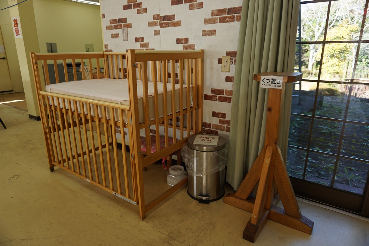 入口そばの休憩室の2階にはベビーベッド2台ございます。