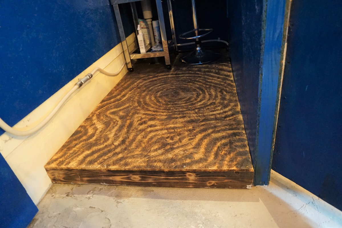 トイレ側の段差が約5cm、お手洗い場の段差が約10cmございます。