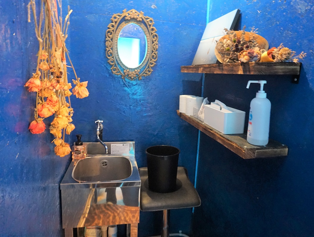 ドアを開いて、左手がトイレ、右手がお手洗いとなっております。