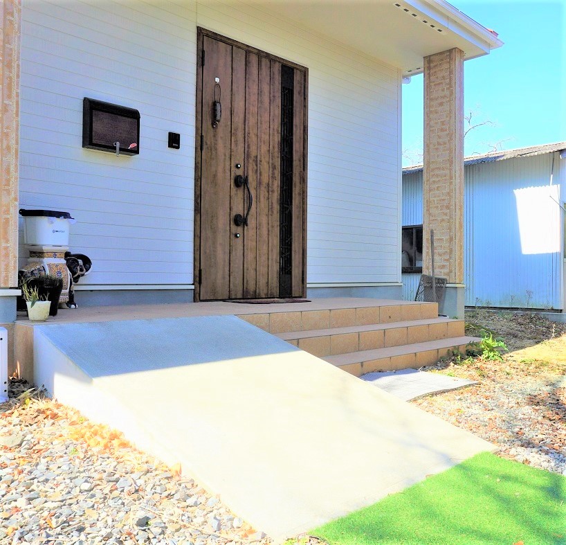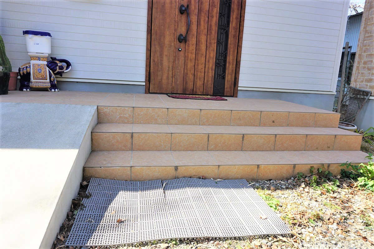 段差は、出入口までに3段、屋内への登り口に1段あります。