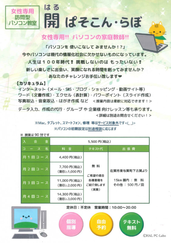 ◆ 自由予約 でスケジュールもたてやすい!(お好きな時間から開始できます)