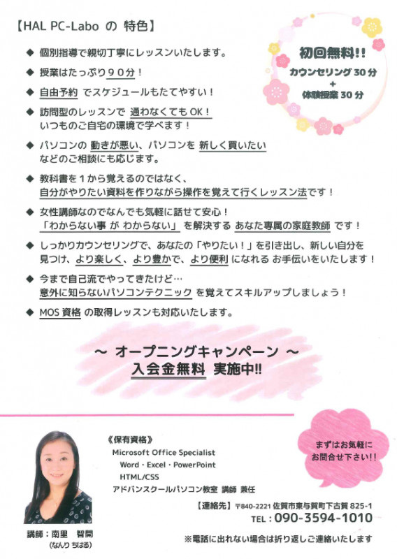 ◆ 完全個別指導で親切丁寧にレッスンいたします。