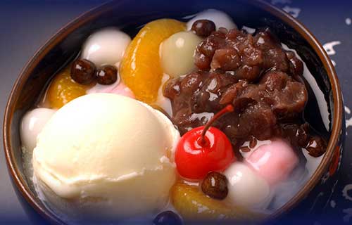 和風スウィーツのメニューでは、上品な甘辛たれの手作りみたらしだんごを始め、ぜんざいやあんみつなど、絶妙な味が楽しめます。勿論、つぶあんや寒天、白玉、黒みつなど全て自家製で、北海道産の大納言など素材も厳選したものを使用しています。