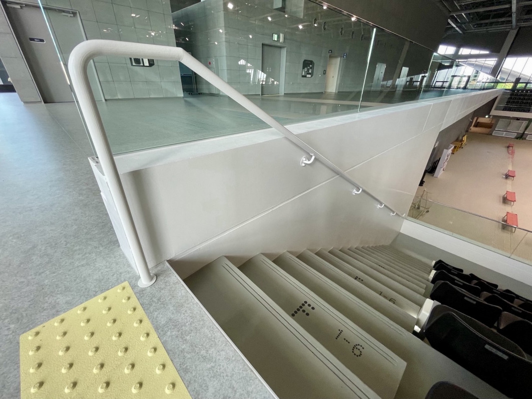 観客席には車いすスペースを8か所にバランスよく配置し、電動車いす用のコンセントも用意しています。