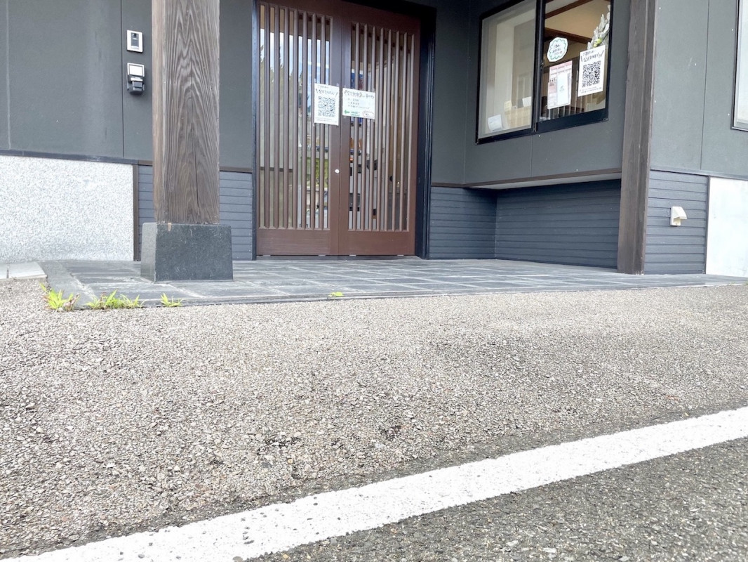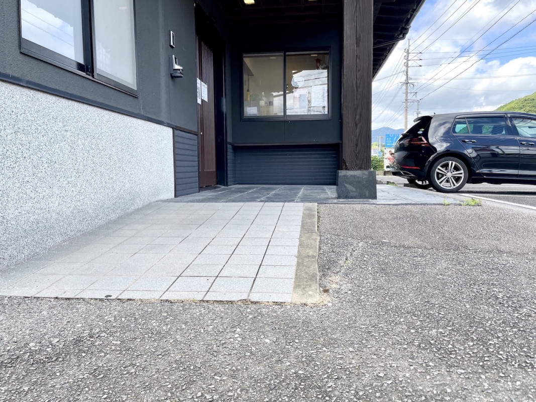 入り口前はスロープ、傾斜になっており、段差なく入店できます。