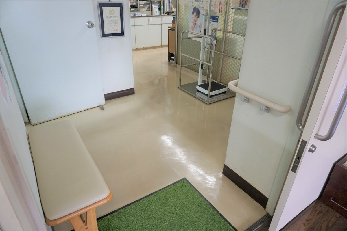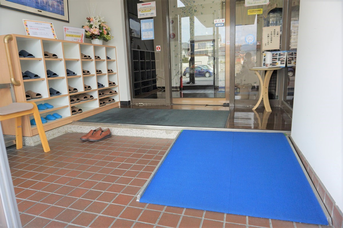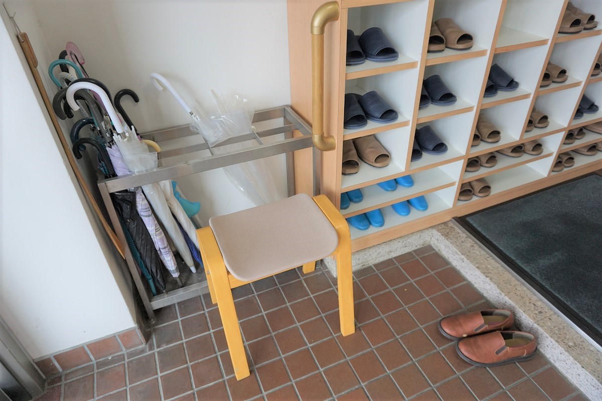 玄関内に段差がありますが、スロープを設置していますので、車いすや手押し車、ベビーカーでもそのままお入りください。