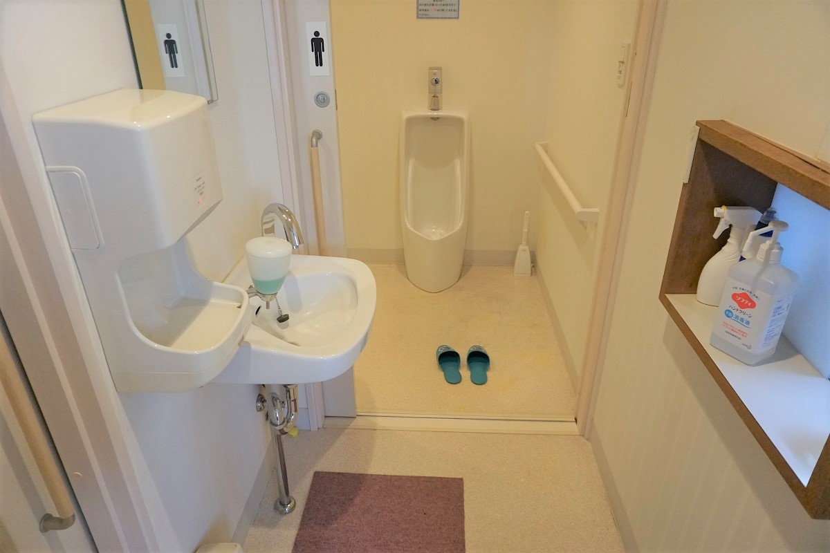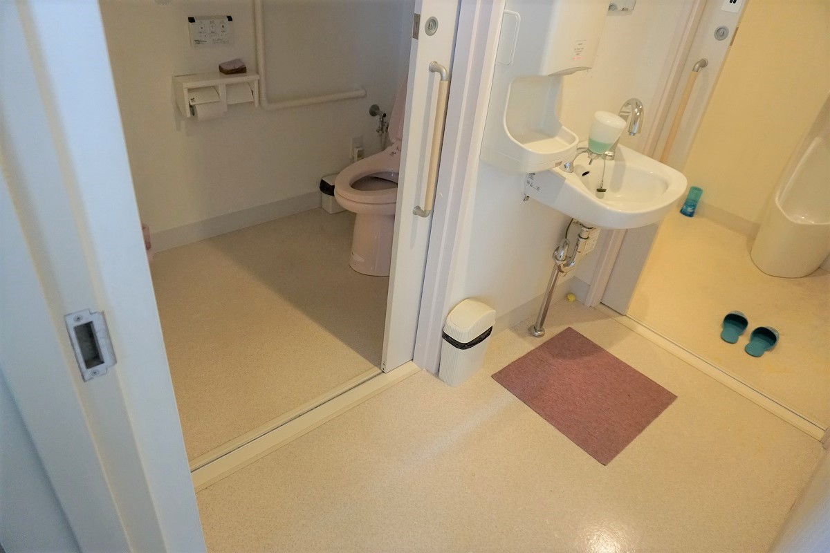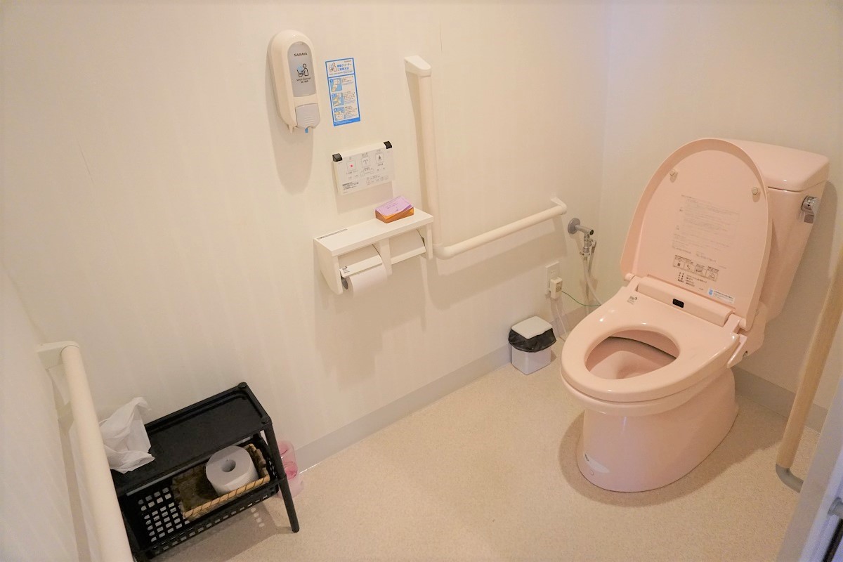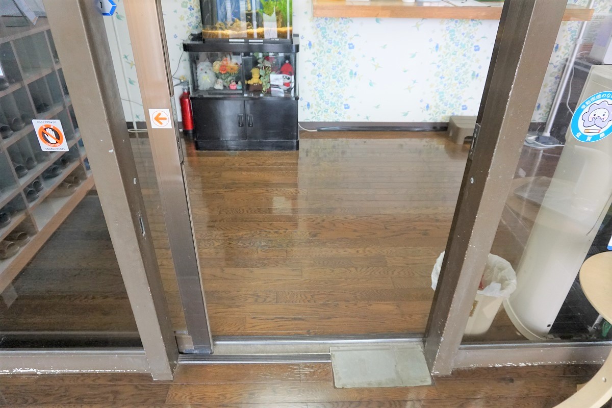 玄関内に段差がありますが、スロープを設置していますので、車いすや手押し車、ベビーカーでもそのままお入りください。