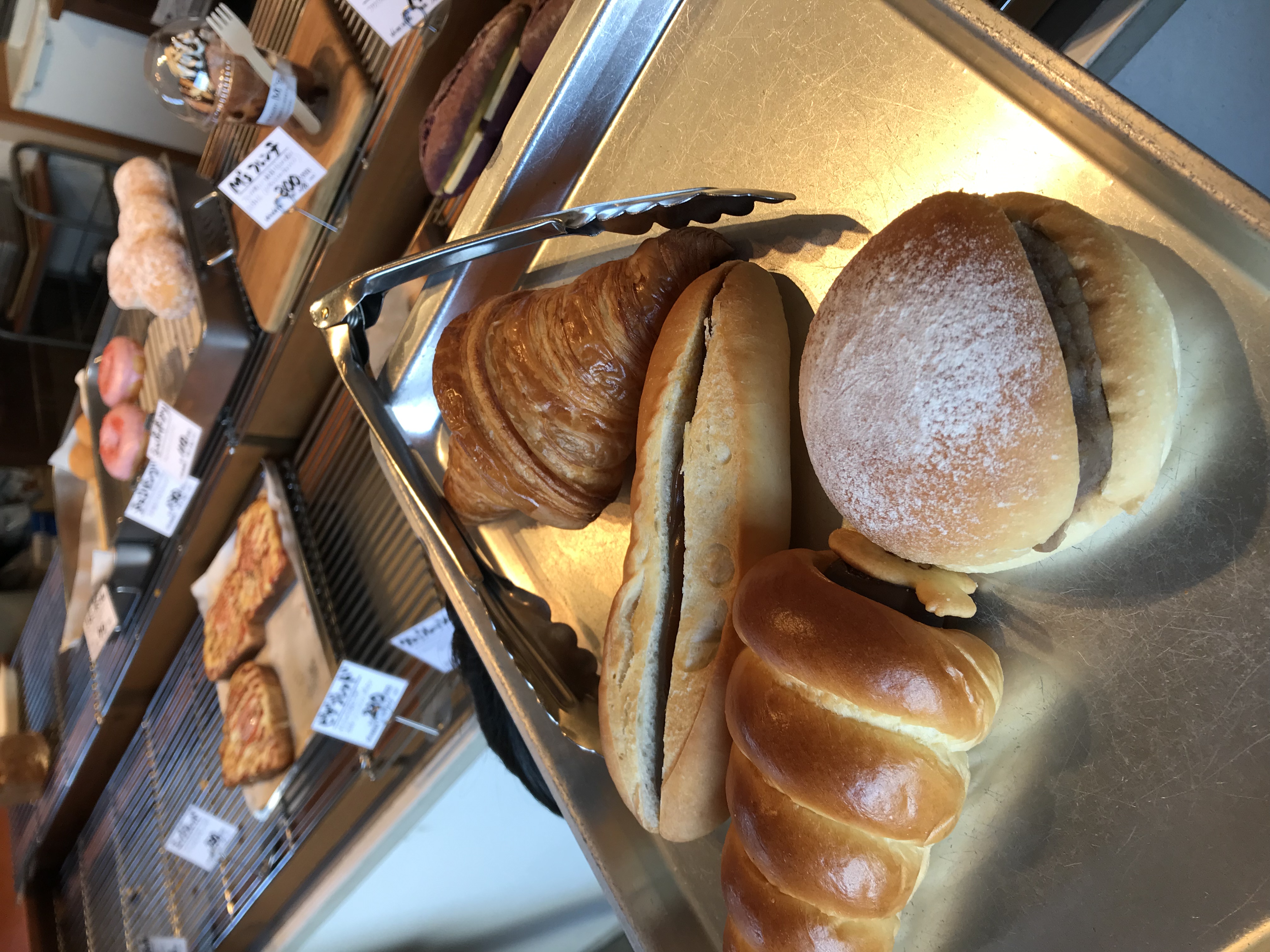 パンを選ぶ際も、お手伝いが必要な場合はスタッフがトレイを持って選びます。