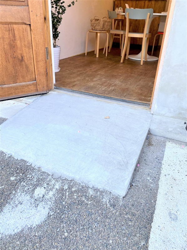 令和4年度さがすたいるプラス補助金を活用して出入口にスロープを設置しました。店内はフラットで通路も広いので、車いすやベビーカーでも安心してご来店ください。