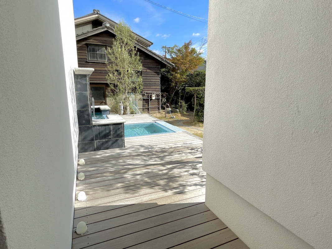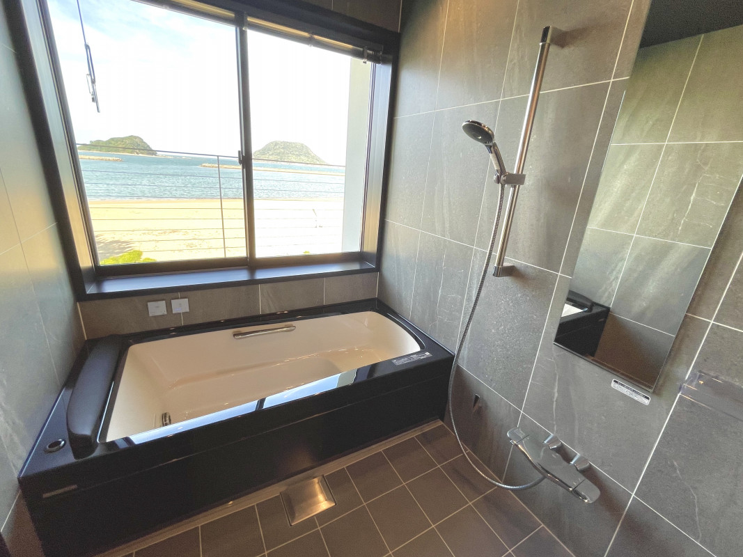 1Fテラスのシャワーで砂を落とし、ソファでくつろぐことができます。