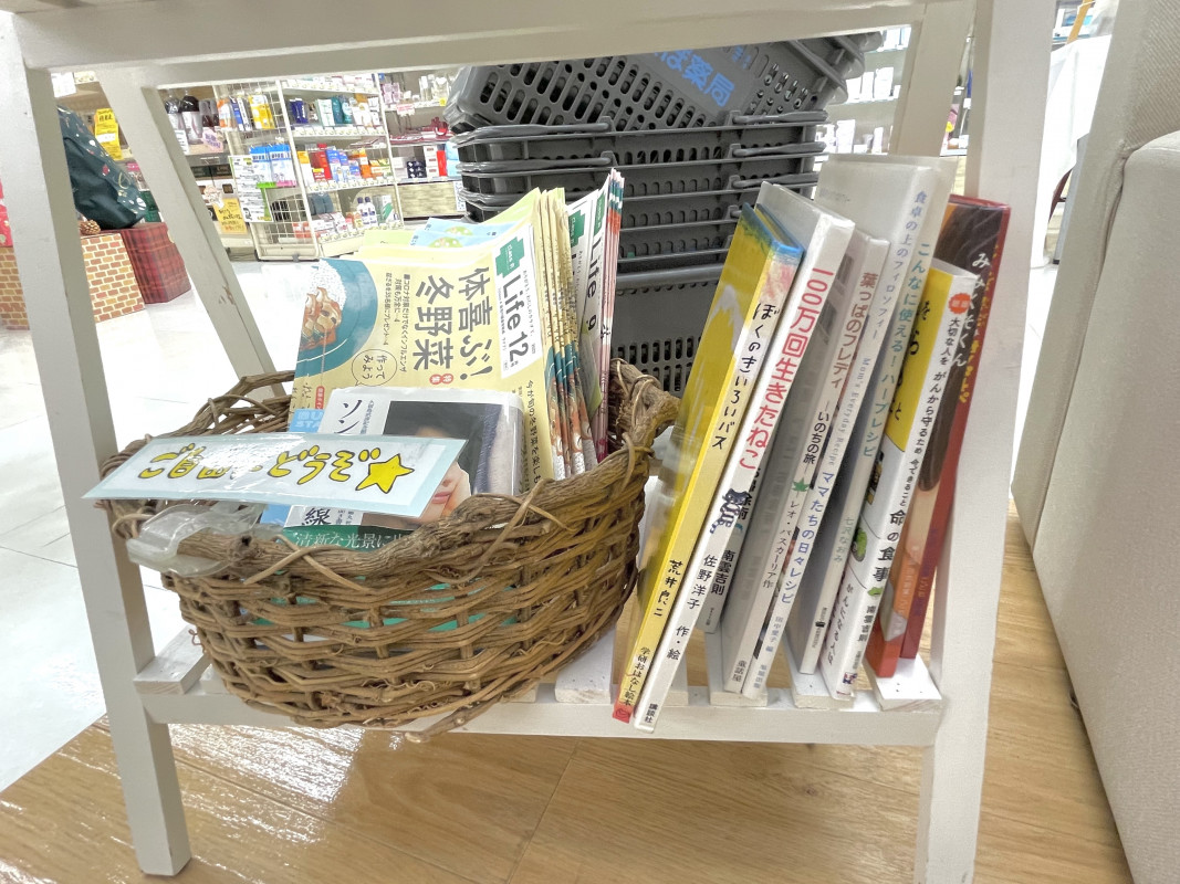 調剤待合の場所には絵本も設置されています。