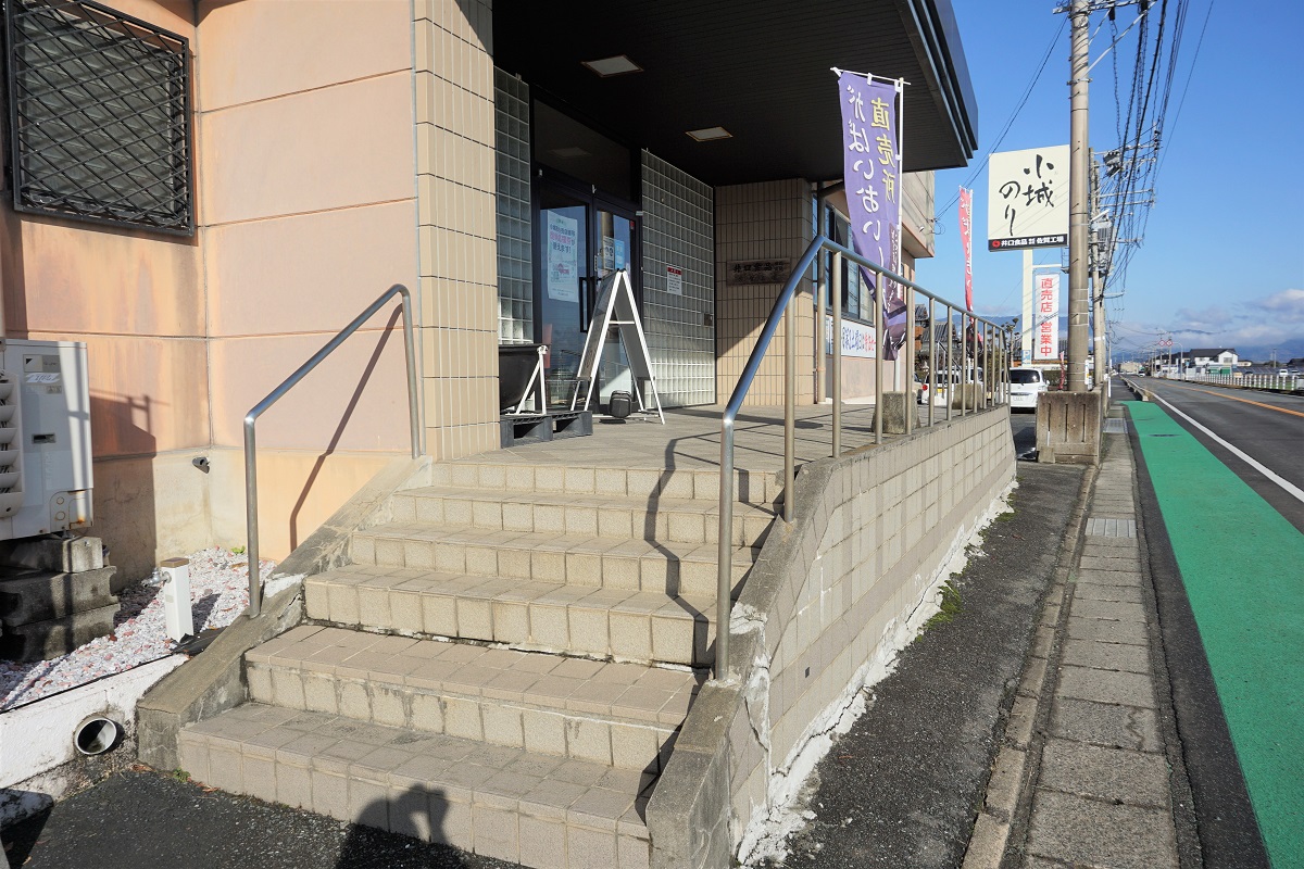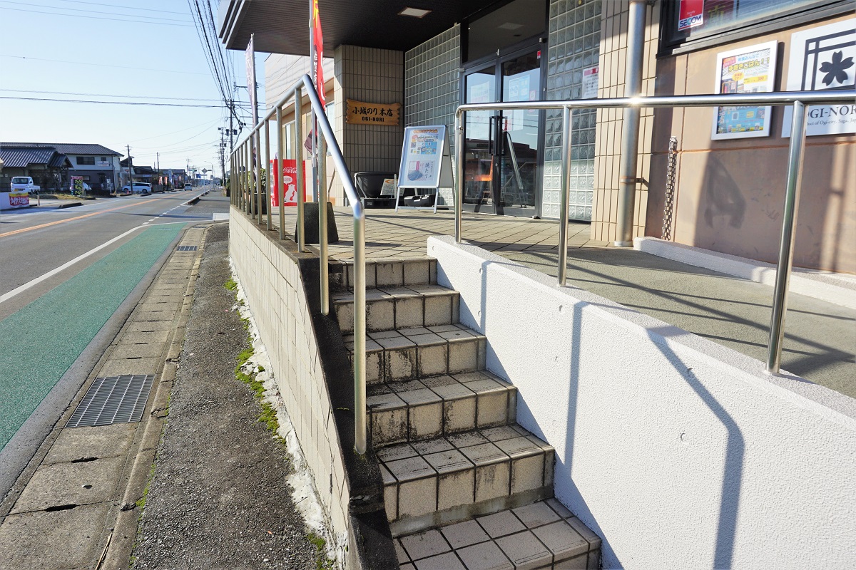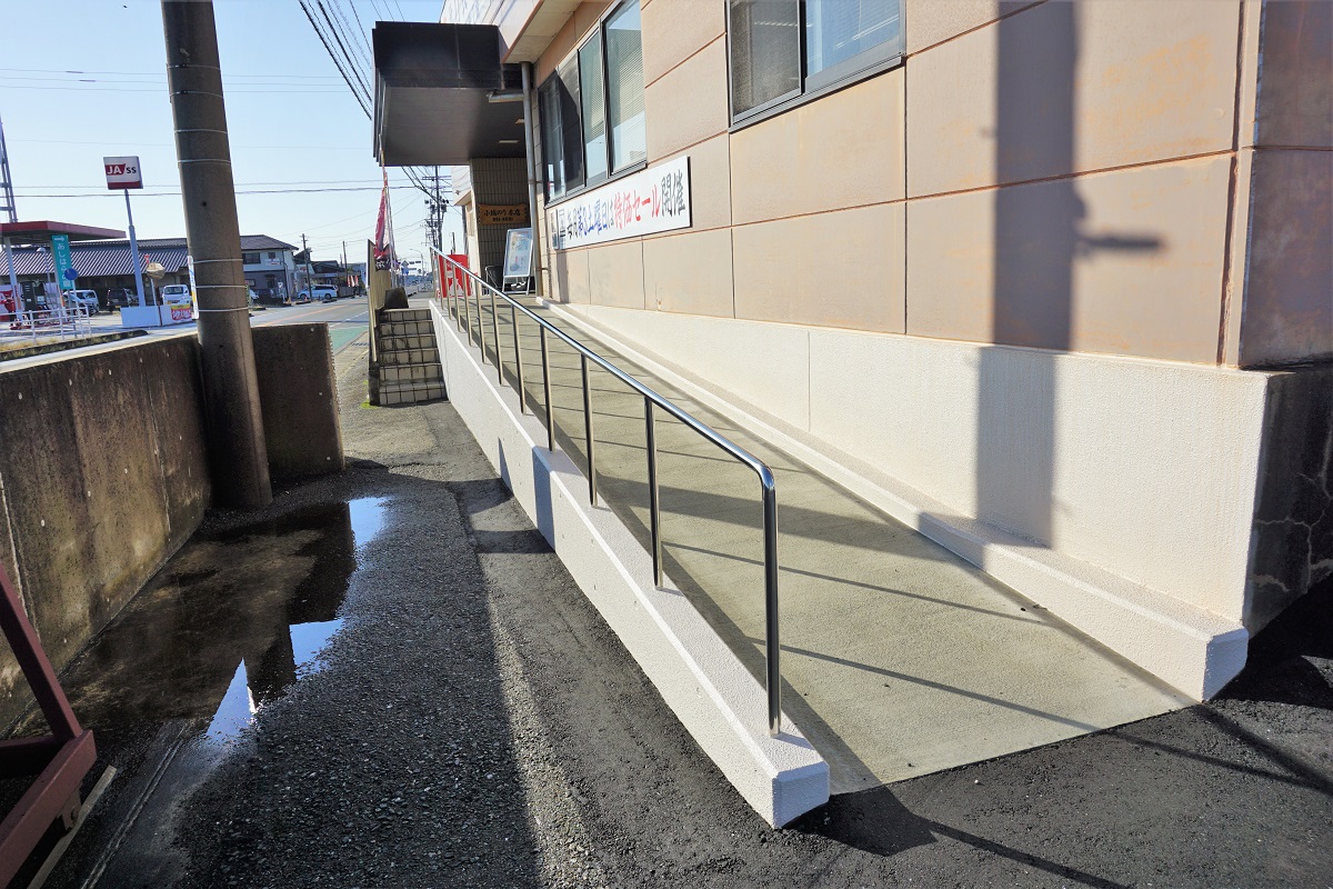 スロープは店舗の北側(駐車場側)に設置しています。
