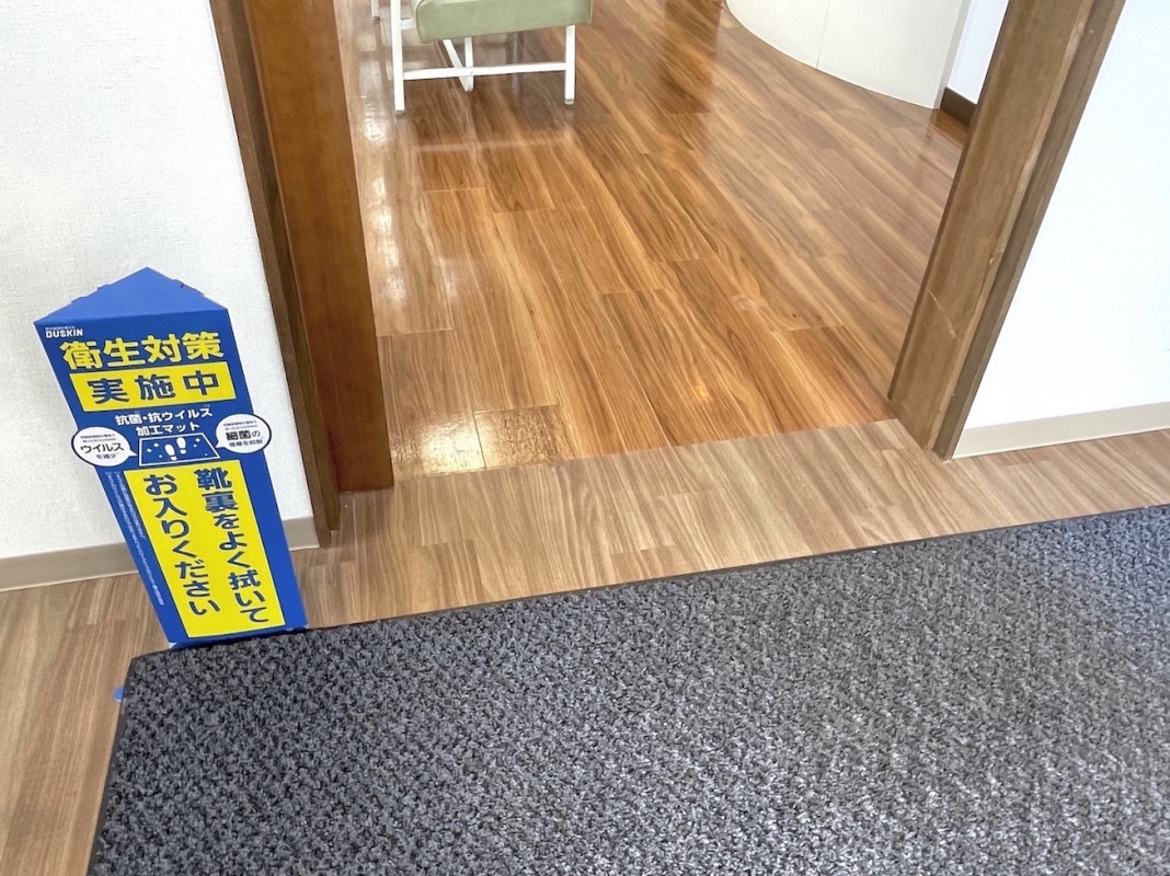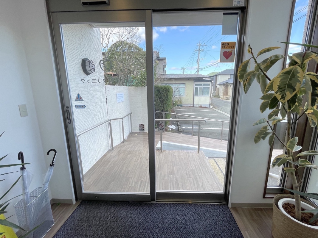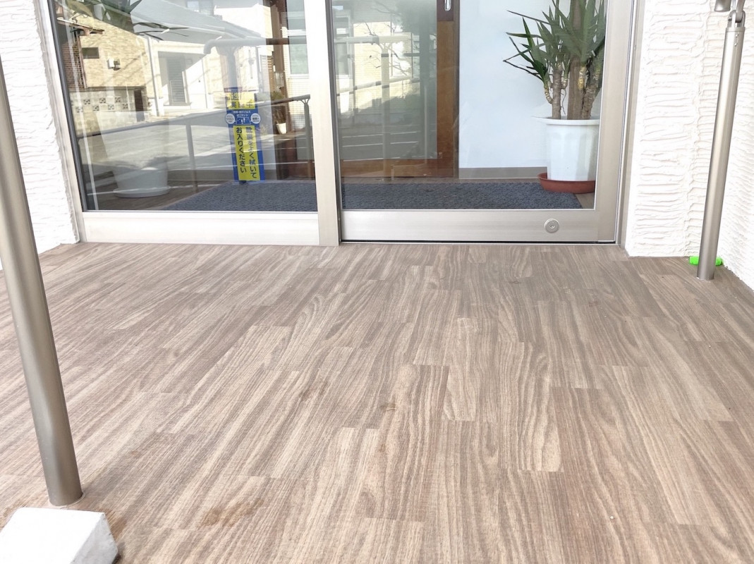 出入口前に階段が4段ありますが、スロープも設置されていて、