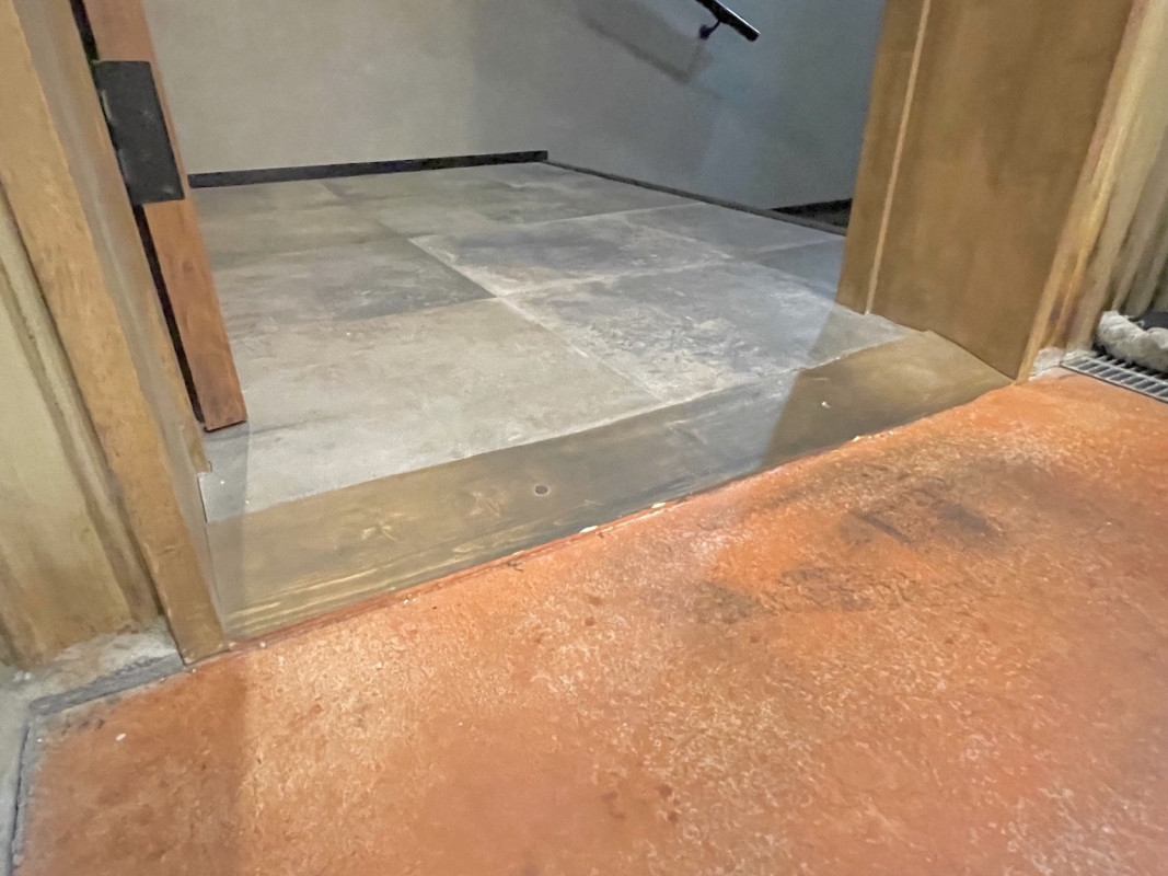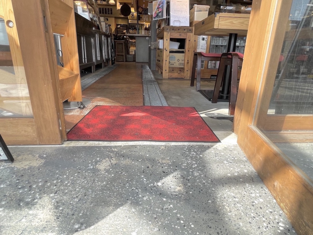・屋内通路は狭くなっており、排水グレーチングもございます