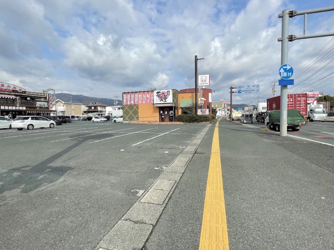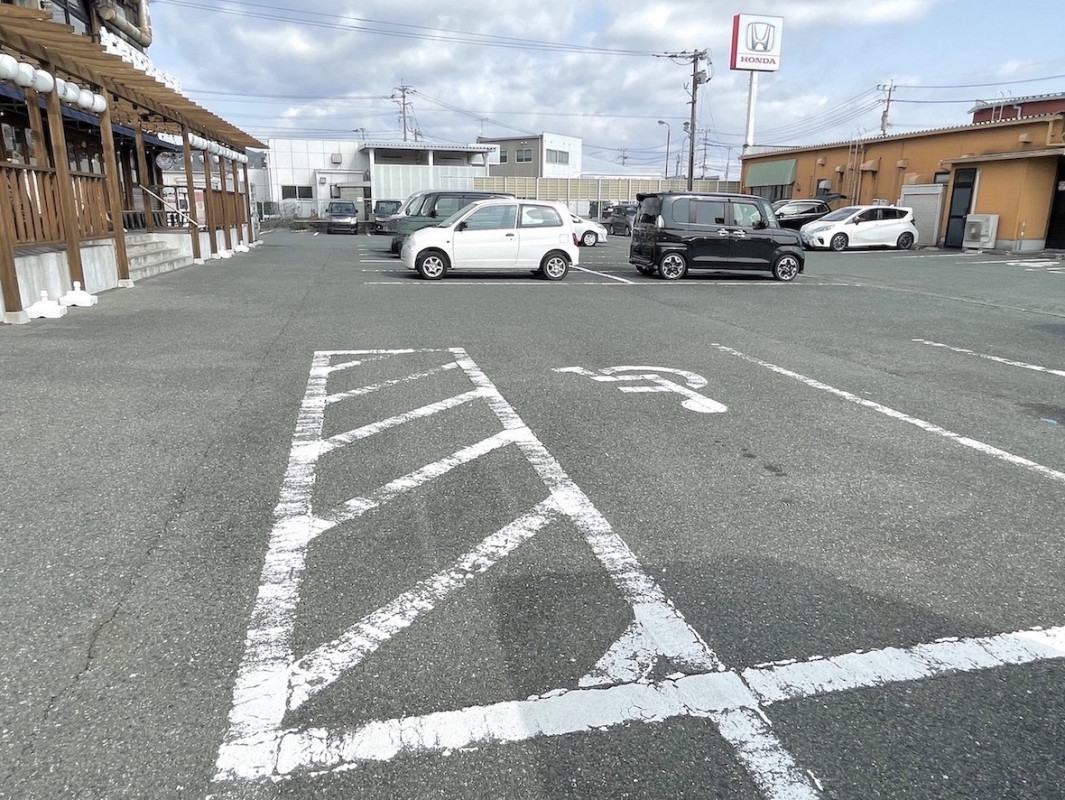 駐車場は広く、車の出入りも多いためお気を付けください。