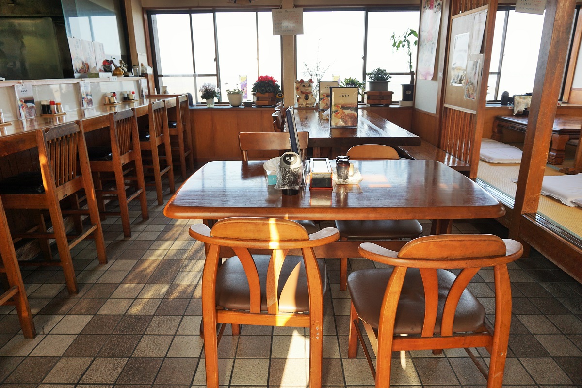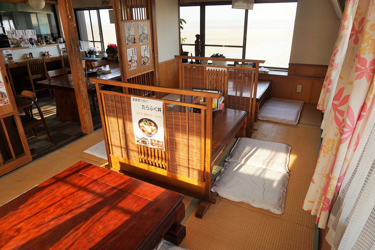 店内の窓からは有明海が一望でき、景色を楽しみながら食事をしていただけます。
