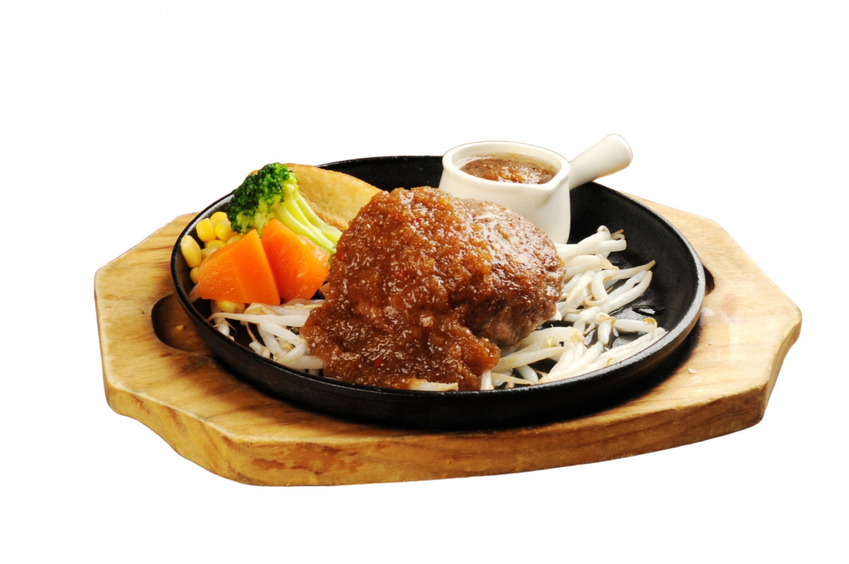 フードのおススメは肉汁たっぷりの鉄板ハンバーグに、牛肉を100%使用したてごねハンバーグ。和風ソース、トマトソース、おろしポンズにデミグラスなど、お好みのソースが肉本来の味を引き立てます。