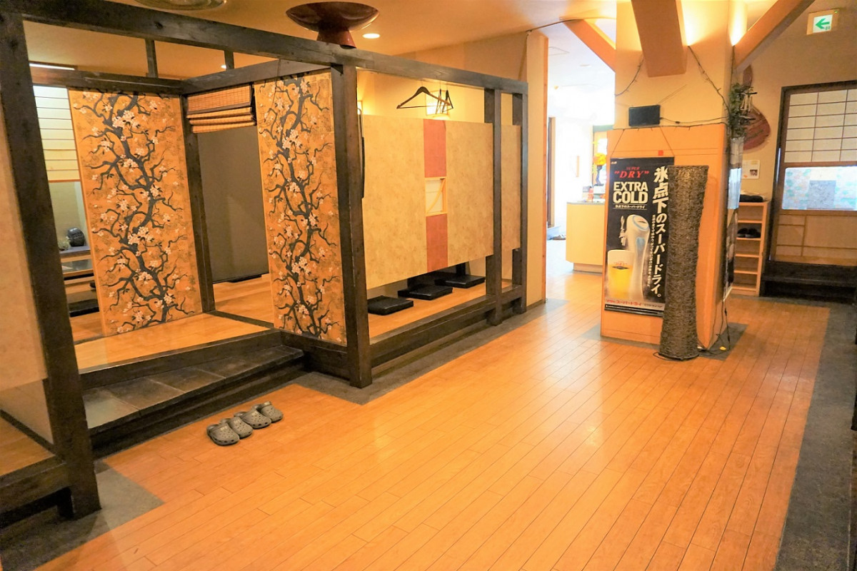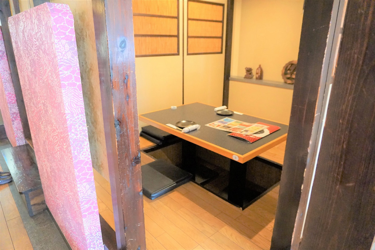 テーブル席は段差ないですが、お座敷へは2段の段差がございます。