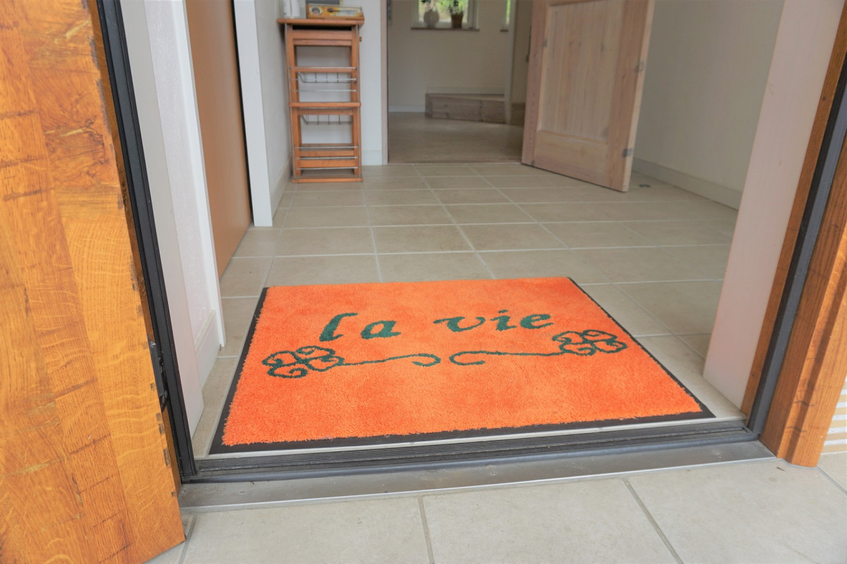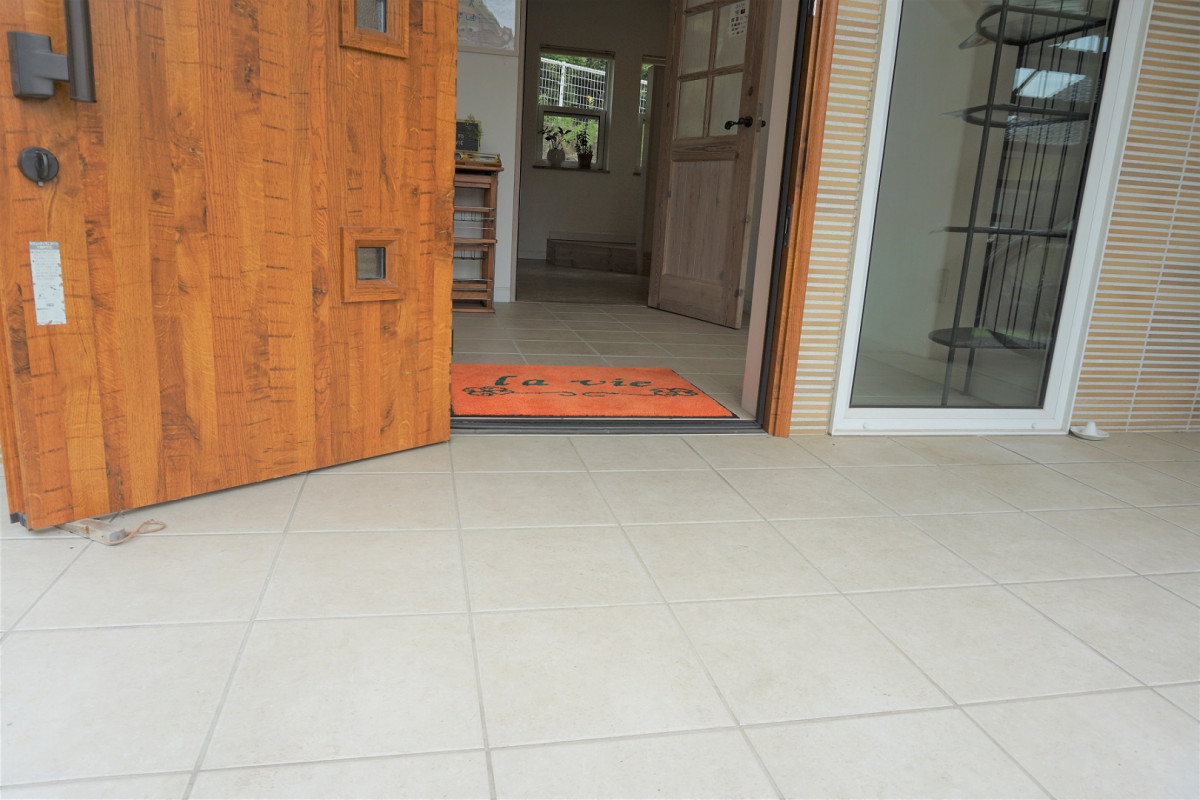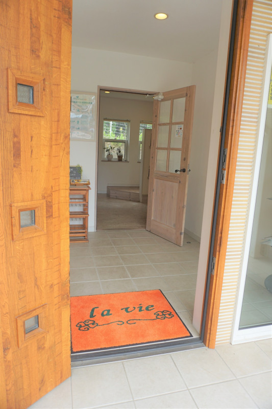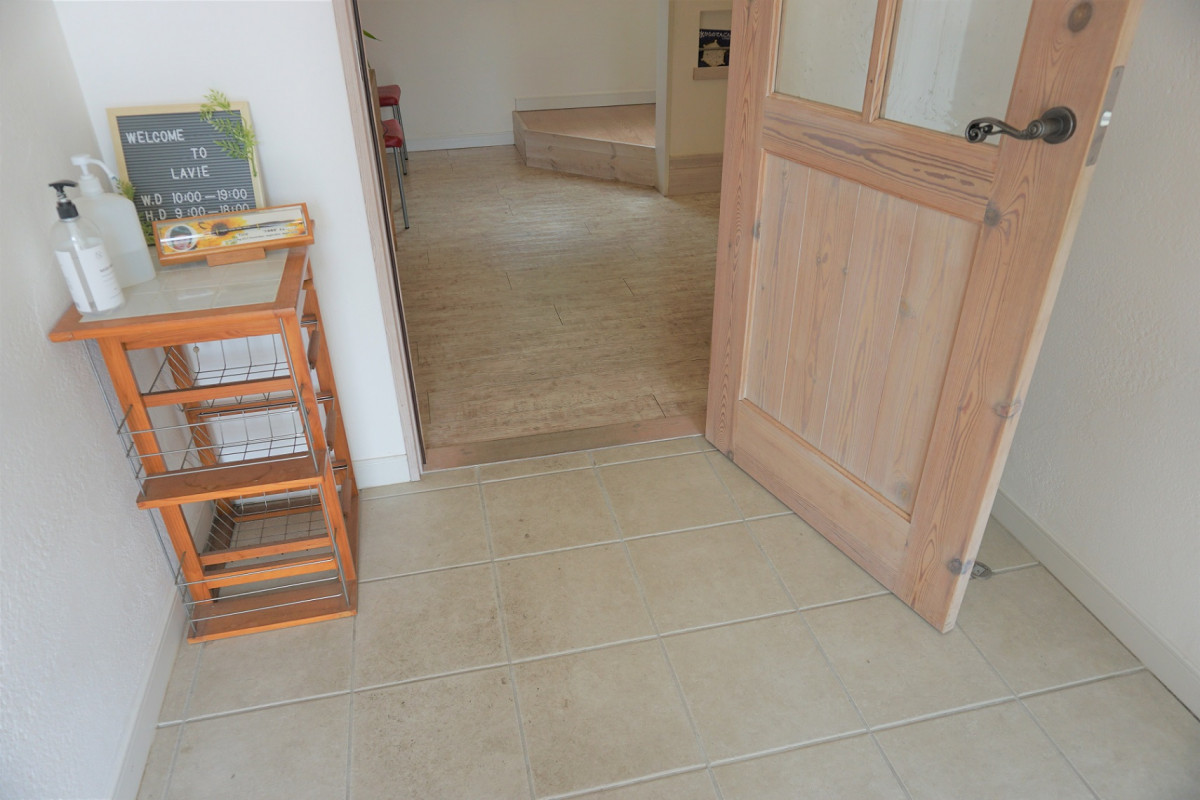 出入口には3段の階段がありますが、スロープがあるので、ベビーカーや車いすの方もスムーズにご入店いただけます。