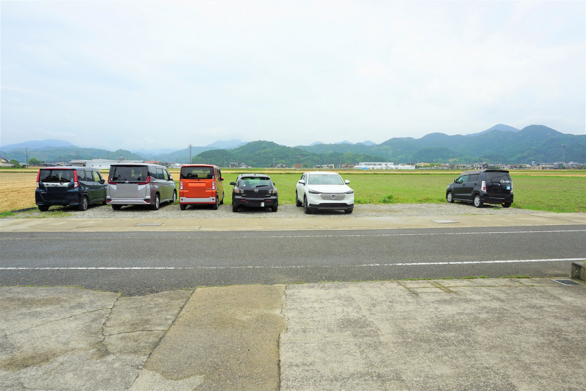 店舗前3台、道を挟んだ向かいに7台とめれます。