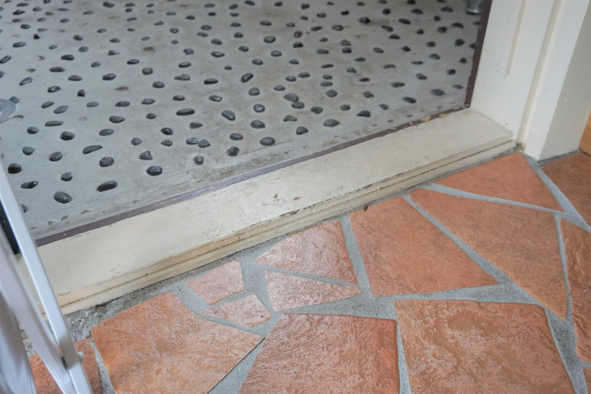 出入り口前に12センチほどの段差が1段あります。