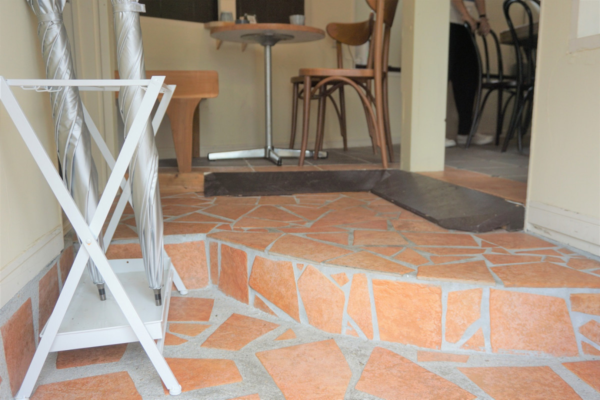 テイクアウト用受け取り口には6センチほどの段差あります。