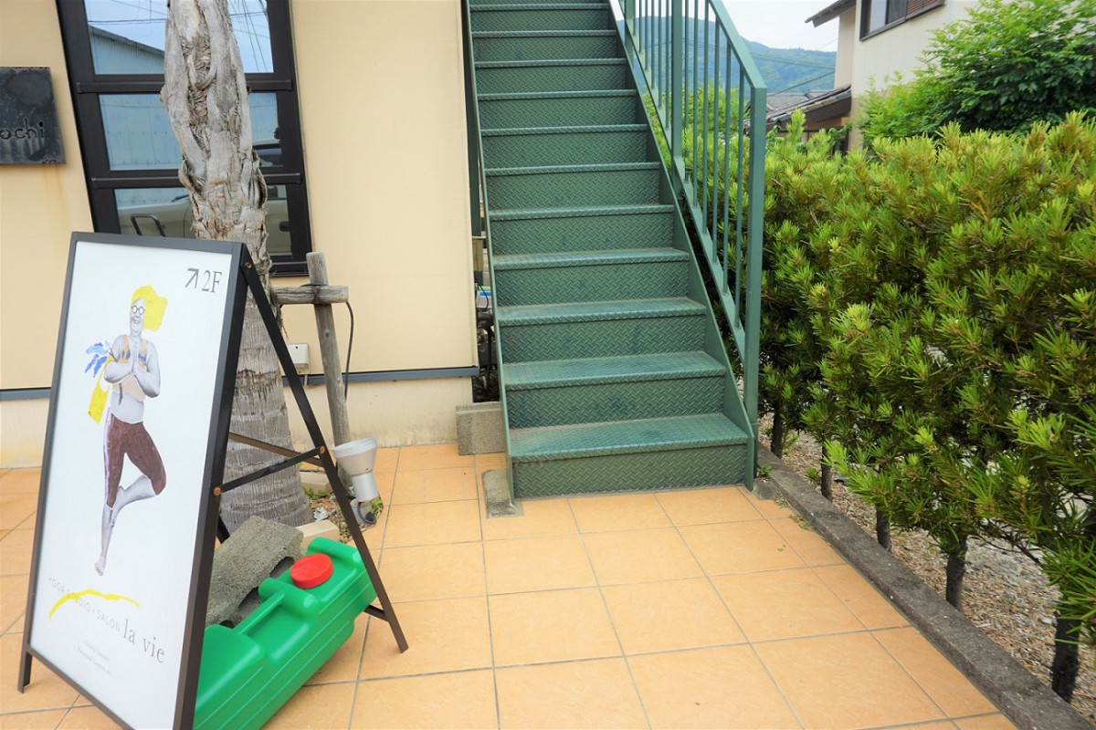 店舗は2階にあるので階段で登ってください。