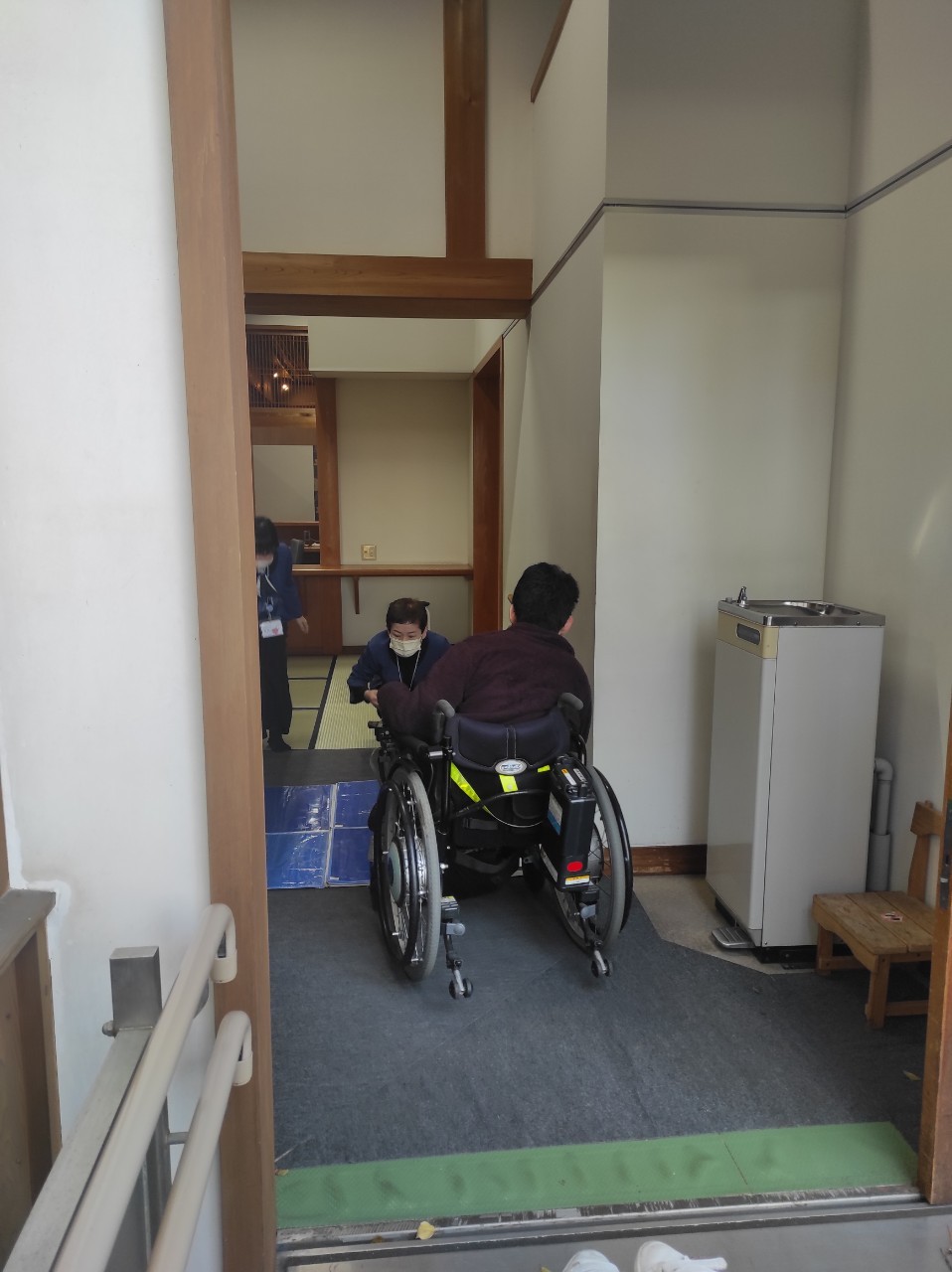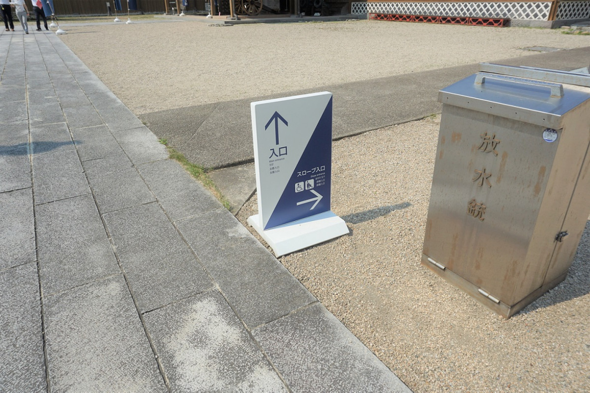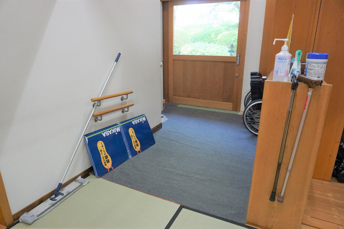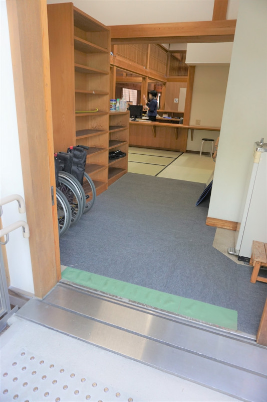 正面玄関は入口まで階段がございますが、スロープで入れる入口もございます。