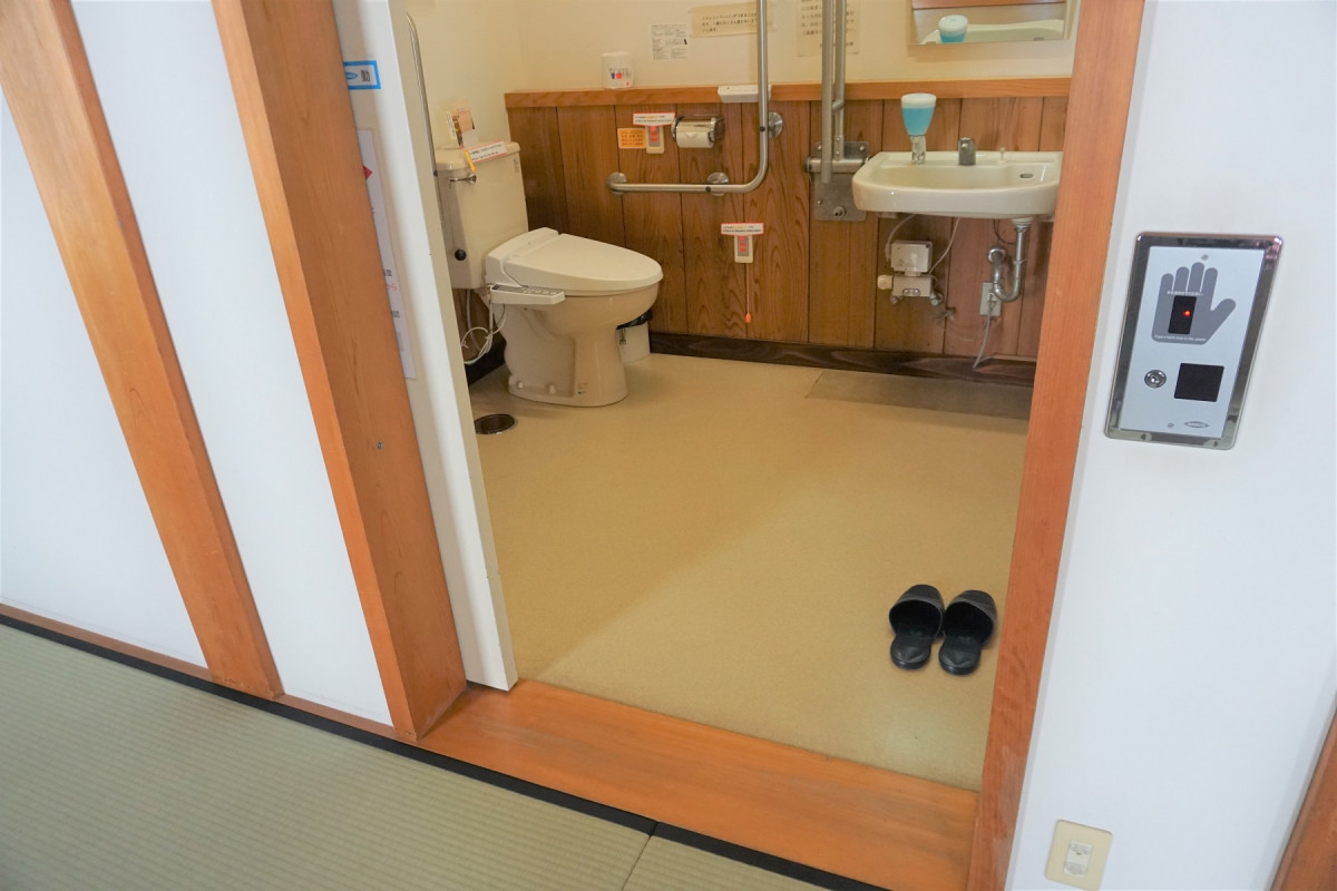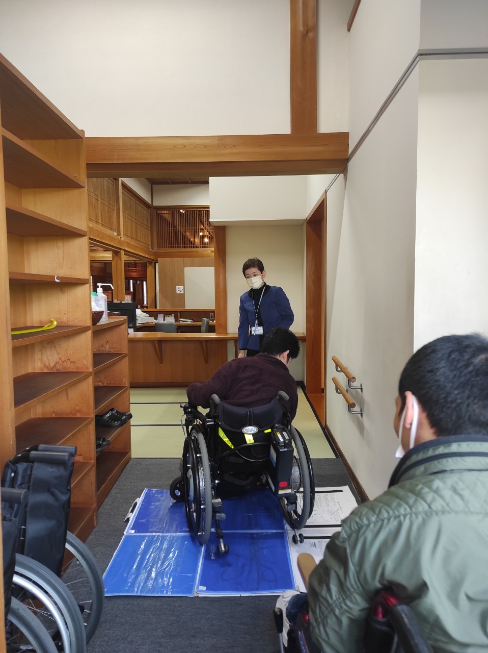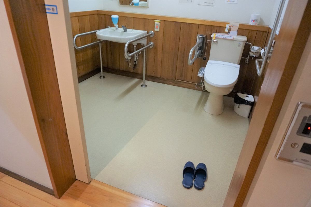 正面玄関は入口まで階段がございますが、スロープで入れる入口もございます。