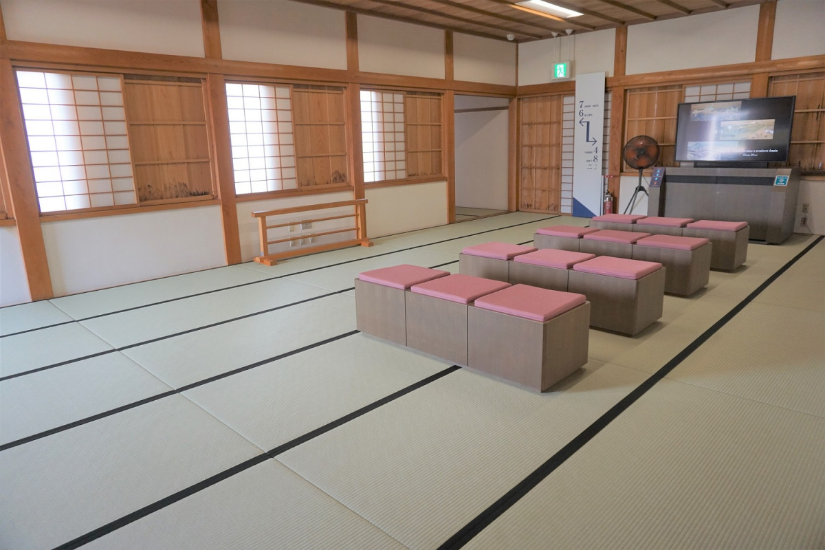 また、館内に入ると45メートルも続く畳敷きの長い廊下や320畳の大広間が広がっており、心地よい和空間を体感することができます。また、展示方法もユニークで、本丸御殿を3D画面で探検できる「バーチャル佐賀城」やARで鍋島直正とツーショット写真が撮れる「からくりウィンドウ」、○×クイズやゲームがある情報コーナーなどが楽しめます。