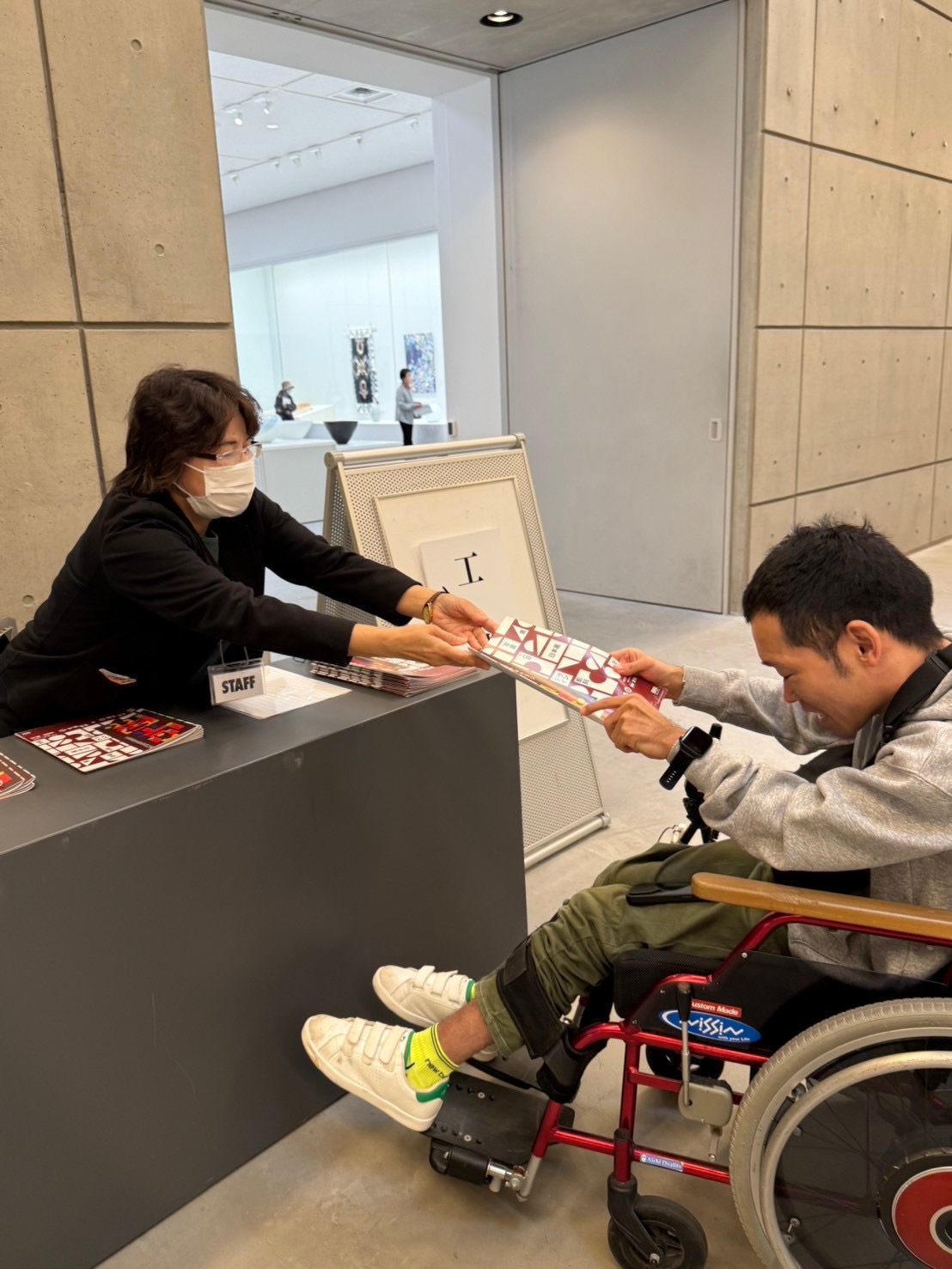 2階画廊に行かれる際は基本階段利用となりますが、車いすの方など階段が困難な方は、荷物運搬用ではございますがエレベーターを利用できますので、お申し付けください。