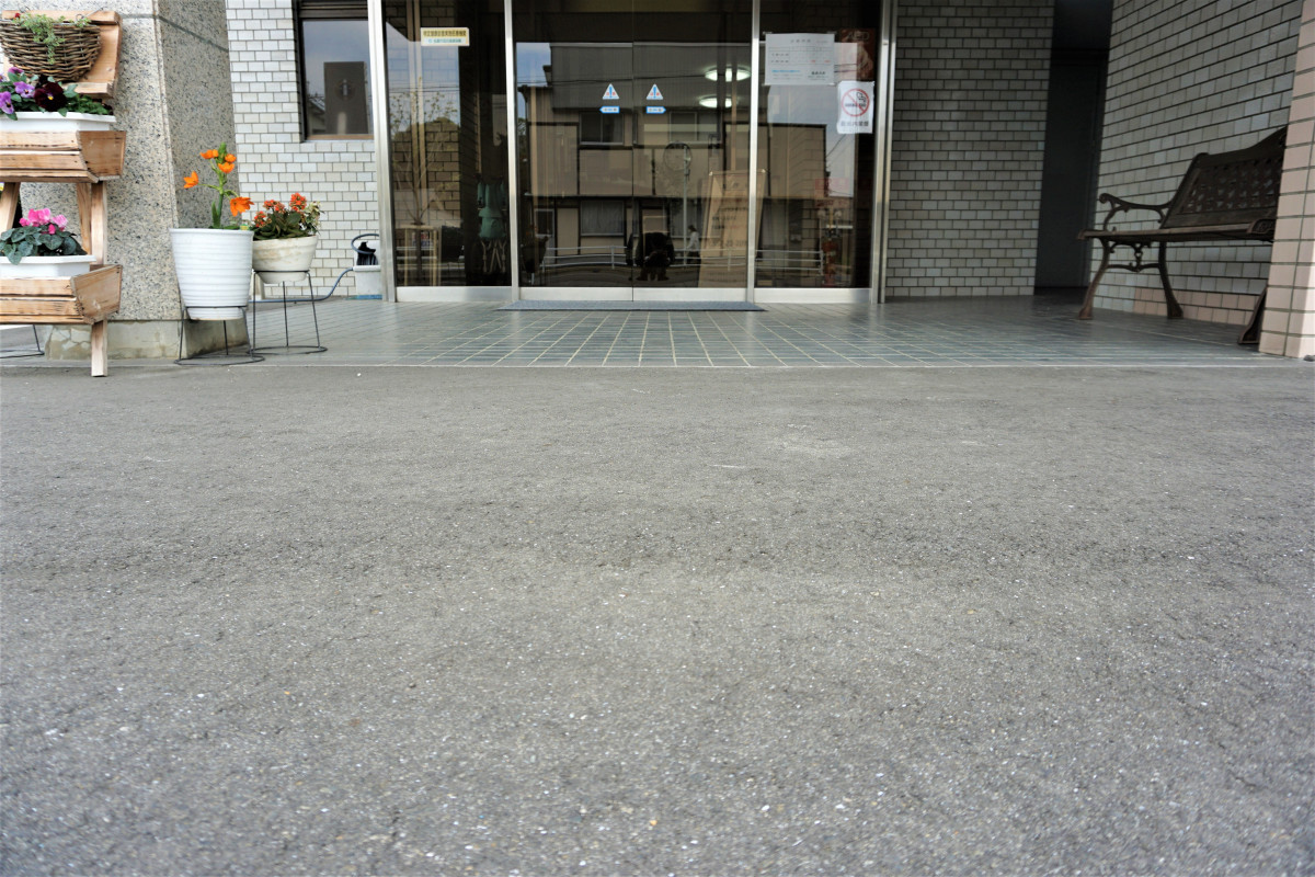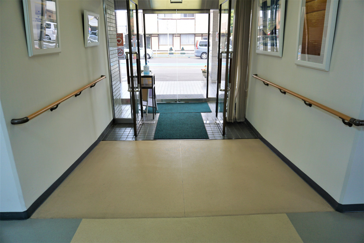 玄関入口はスロープになっていて、車いすのまま院内に入ることができます。