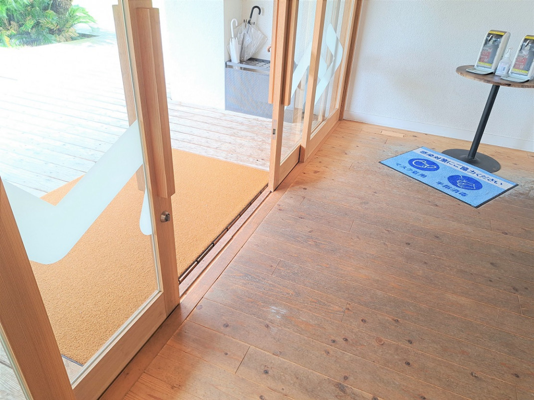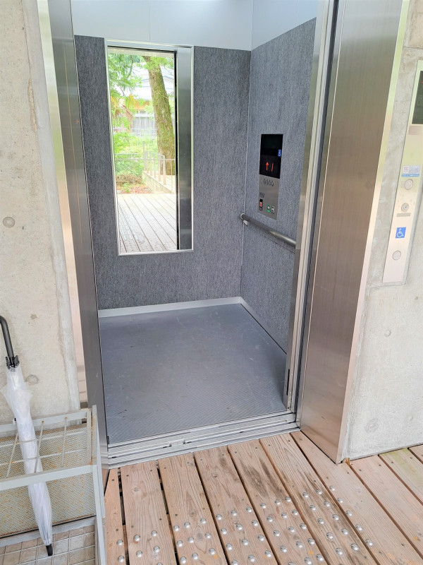 駐車場から受付へは階段をのぼりますが、エレベーターの利用で階段を使わず、段差なく受付できます。