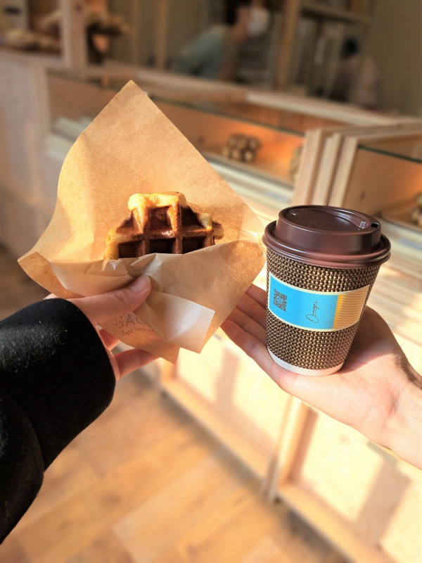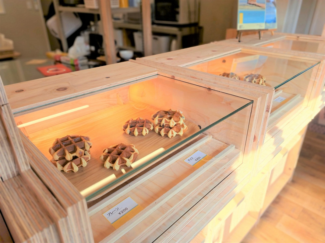 ドイツから取り寄せたワッフルメーカーで焼いたワッフルは、サクッとフワッとした食感に思わず笑顔になります☺