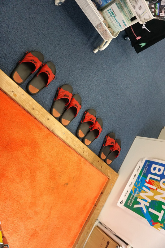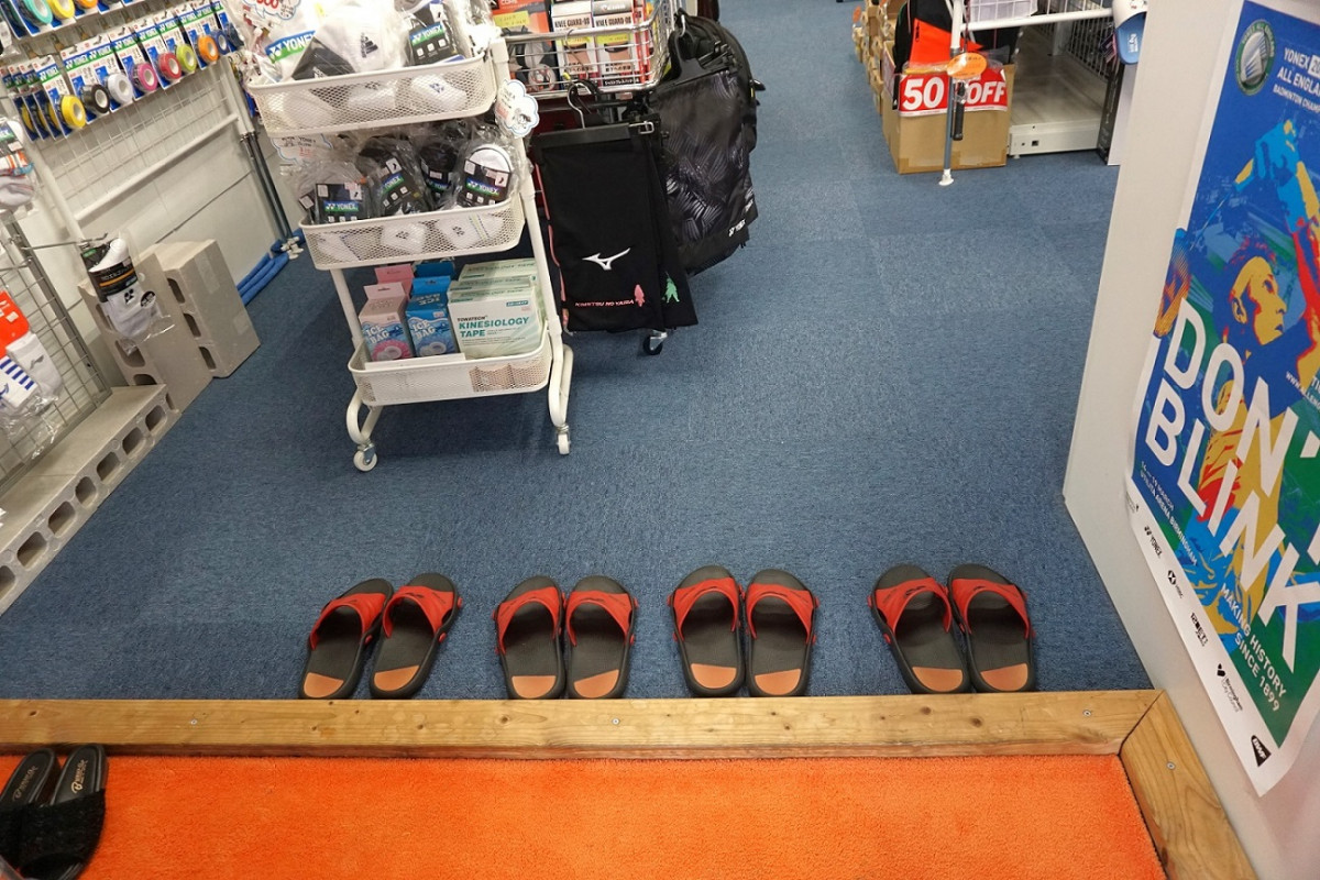店内へは靴を脱いで、スリッパに履き替えてください。